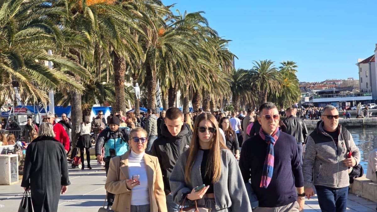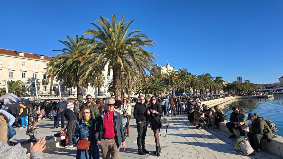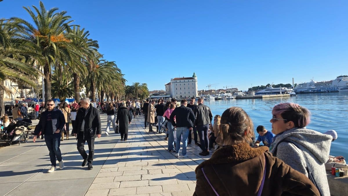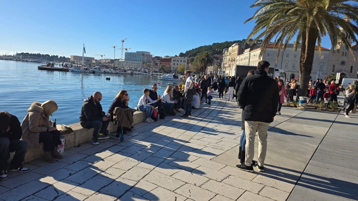 Posljednji je dan 2024. godine, a čini se da su ga mnogi odlučili provesti na Rivi. Lijepo vrijeme pomazilo je Splićane, nema više jake bure koja je nekoliko dana puhala i nosila sve pred sobom, pa su odlučili izaći na sunce. Uživaju u druženju, ispijaju kave u dobrom društvu, nazdravljaju Novoj godini, a usput upijaju i vitamin D.