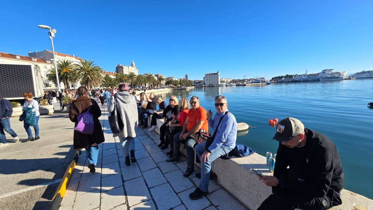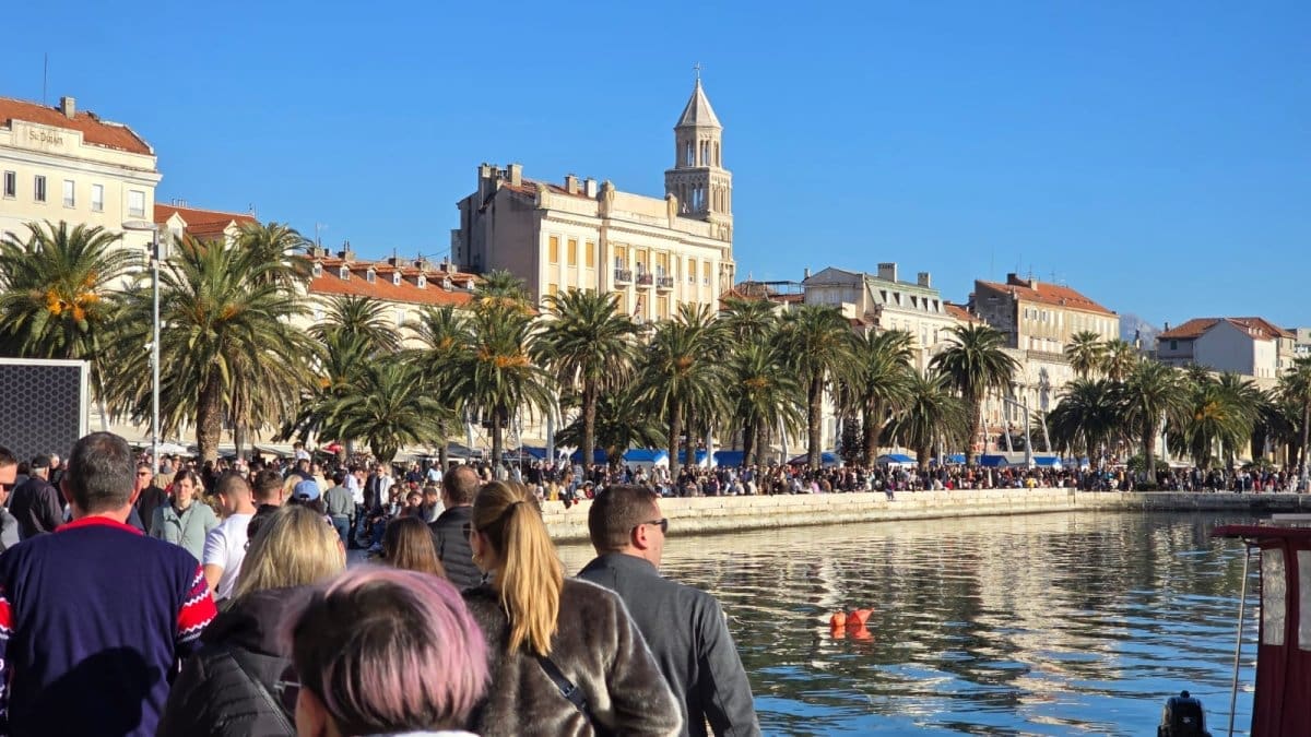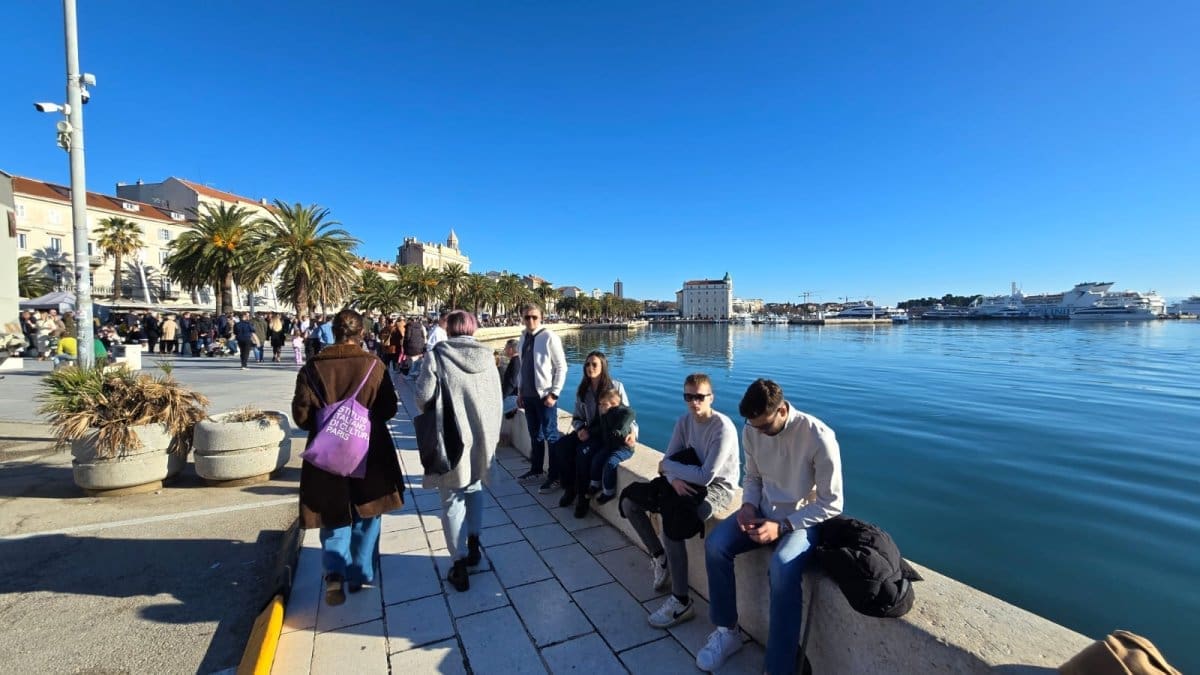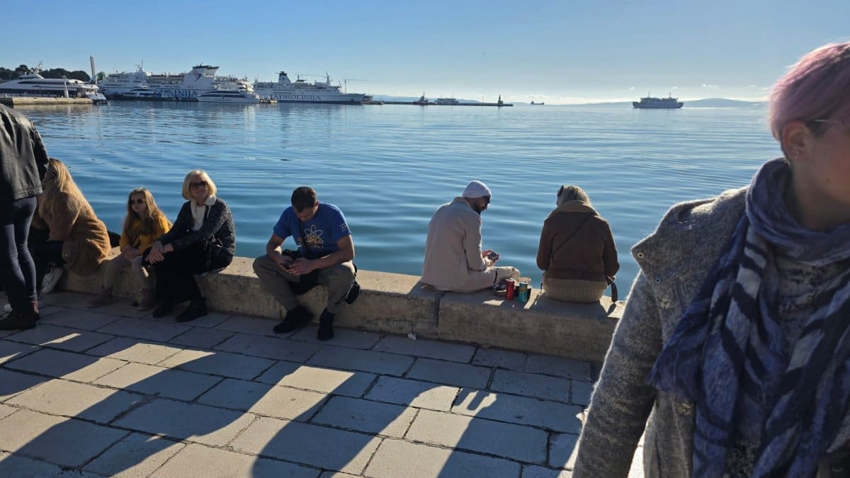 Posljednji je dan 2024. godine, a čini se da su ga mnogi odlučili provesti na Rivi. Lijepo vrijeme pomazilo je Splićane, nema više jake bure koja je nekoliko dana puhala i nosila sve pred sobom, pa su odlučili izaći na sunce. Uživaju u druženju, ispijaju kave u dobrom društvu, nazdravljaju Novoj godini, a usput upijaju i vitamin D.