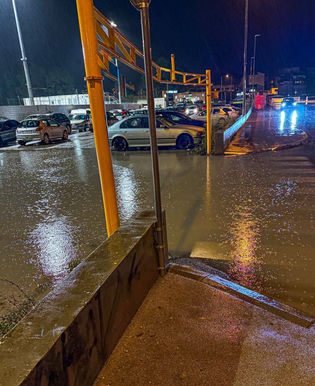 “Klasika, ovaj parking uvik bude pun vode nakon kiše, ali prvi put vidim da je voda poplavila i cili pješački, kojeg je nemoguće prijeći, već triba duboko zagazit na glavnu cestu”, poručuje Stobrečanin.