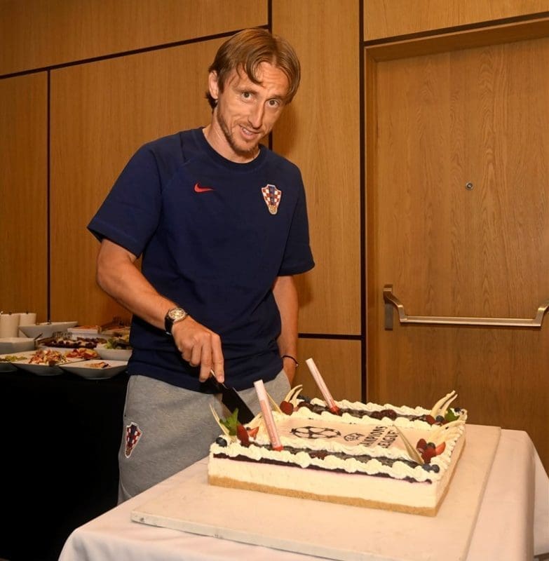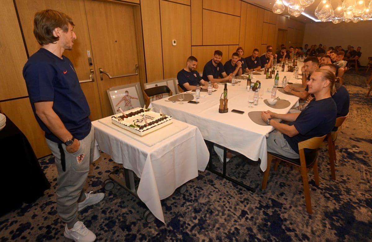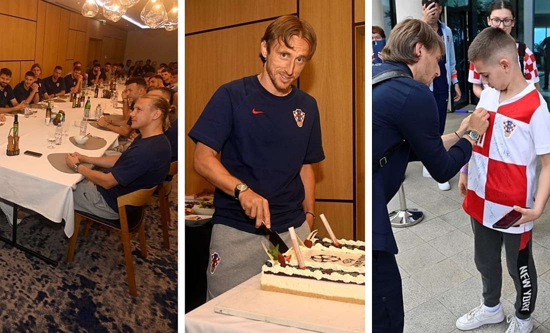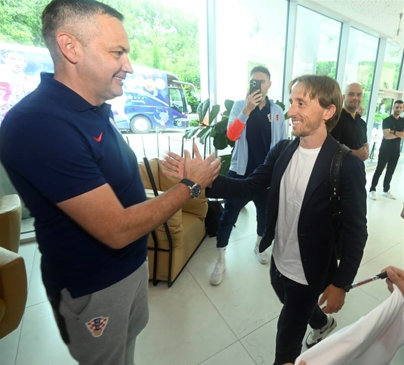 “U ime predsjednika, izbornika i svih nas ovdje prisutnih, ali i cijele hrvatske nogometne obitelji izražavam ti moje duboko poštovanje i čestitam na još jednom veličanstvenom uspjehu. Svi mi smo jako ponosni što si naš”, rekla je u uvodu team menadžerica Iva Olivari i prepustila riječ Luki Modriću: