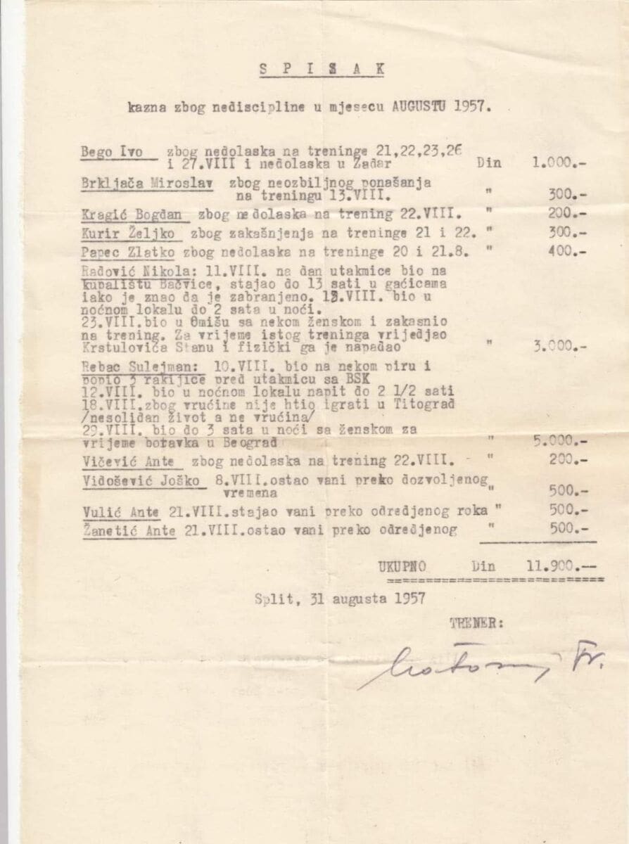 Iz priložene slike možemo vidjeti da je Hajdukova služba strogo kontrolirala igrače, a za što su sve kažnjavani Bijeli, pogledajte na fotografiji.