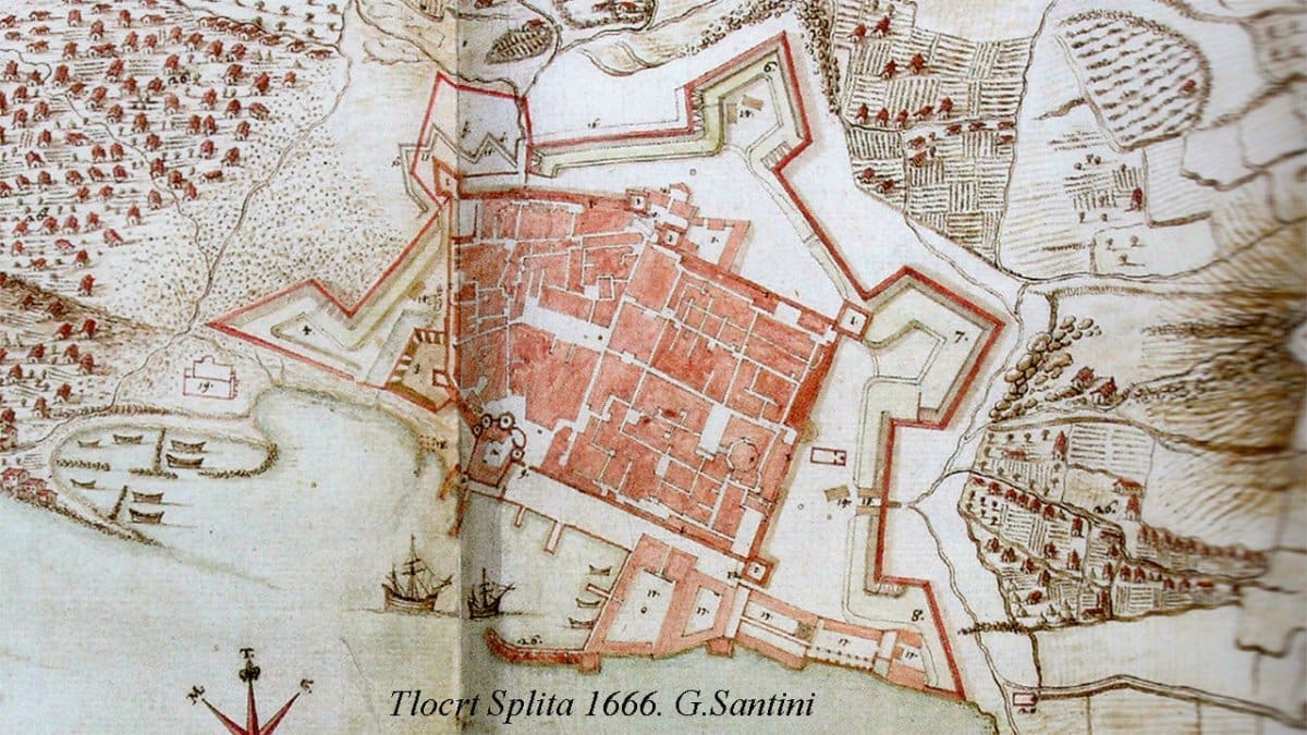 Tako opis dvojice sindika u Dalmaciji 1525. godine, Leonarda Veniera i Girolama Contarinija, ističe slabost Splita zbog vrlo starih zidova oko kojih nema jaraka.