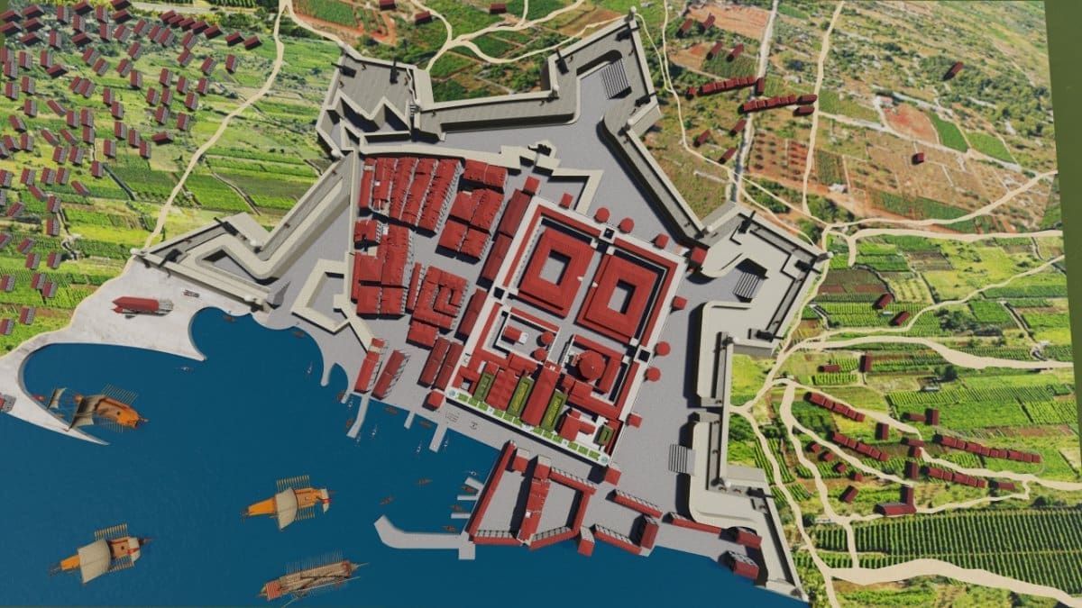 Godine 1660. u Split stiže I. Conti, čiji projekt za novi obrambeni pojas biva prihvaćen. Gradnja započinje središnjim sjevernim bastionom, nazvanim Corner, nastavlja se istočnim bastionom (Contarini), potom zapadnim polu bastionom kod Sv. Frane i jugo- istočnim polu bastionom kraj lazareta. Stanje izgrađenosti splitskih utvrda u godini 1666. prikazuje precizan Santinijev tlocrt, koji je korišten za izradu ovoga 3D modela.
