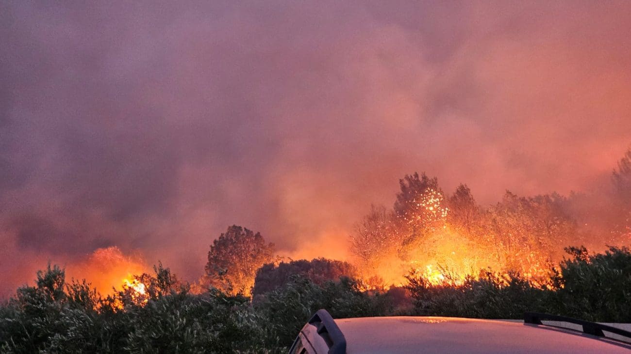 a intervenciji sudjeluju 140 vatrogasaca s 45 vozila te 3 zrakoplova CL-415. Zbog požara zatvorena je državna cesta D8 od Mutograsa do Omiša.