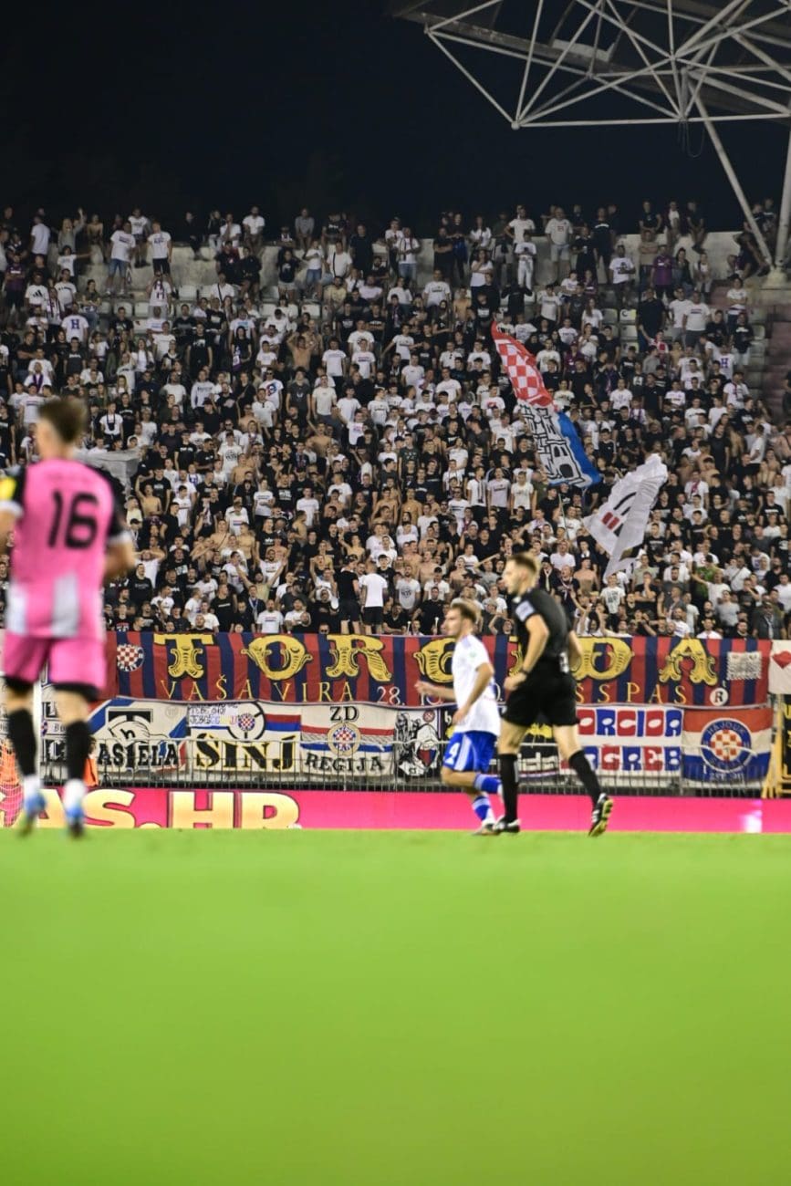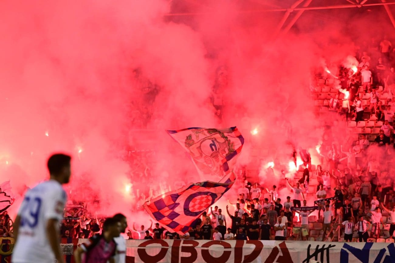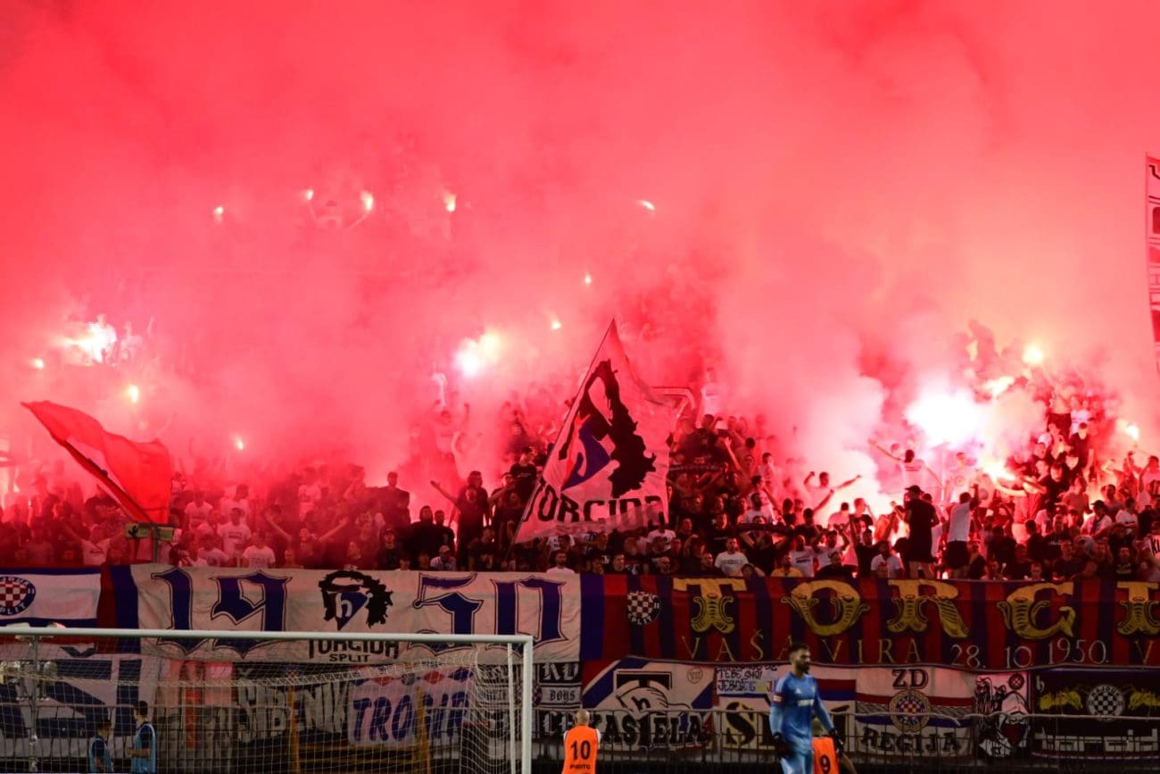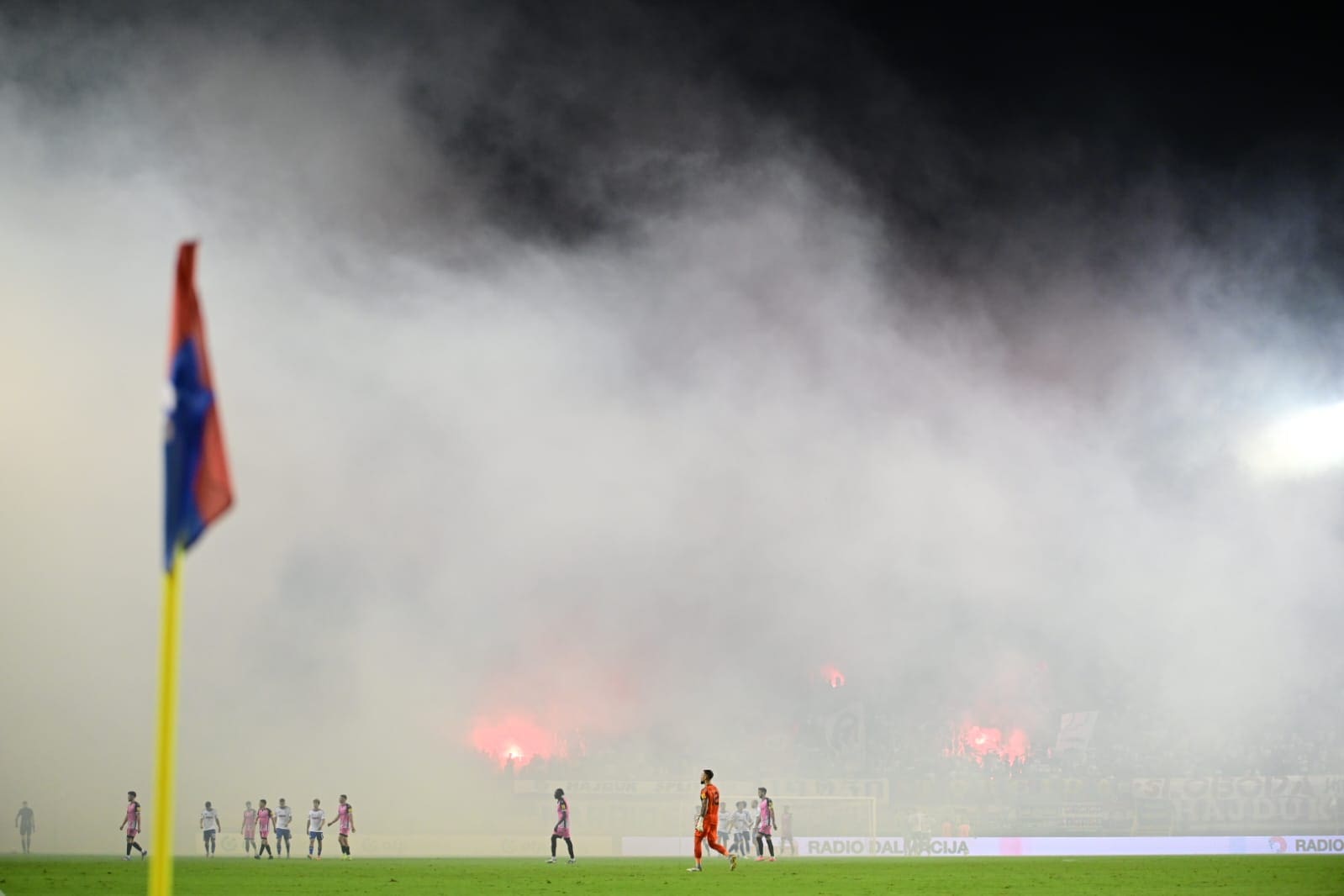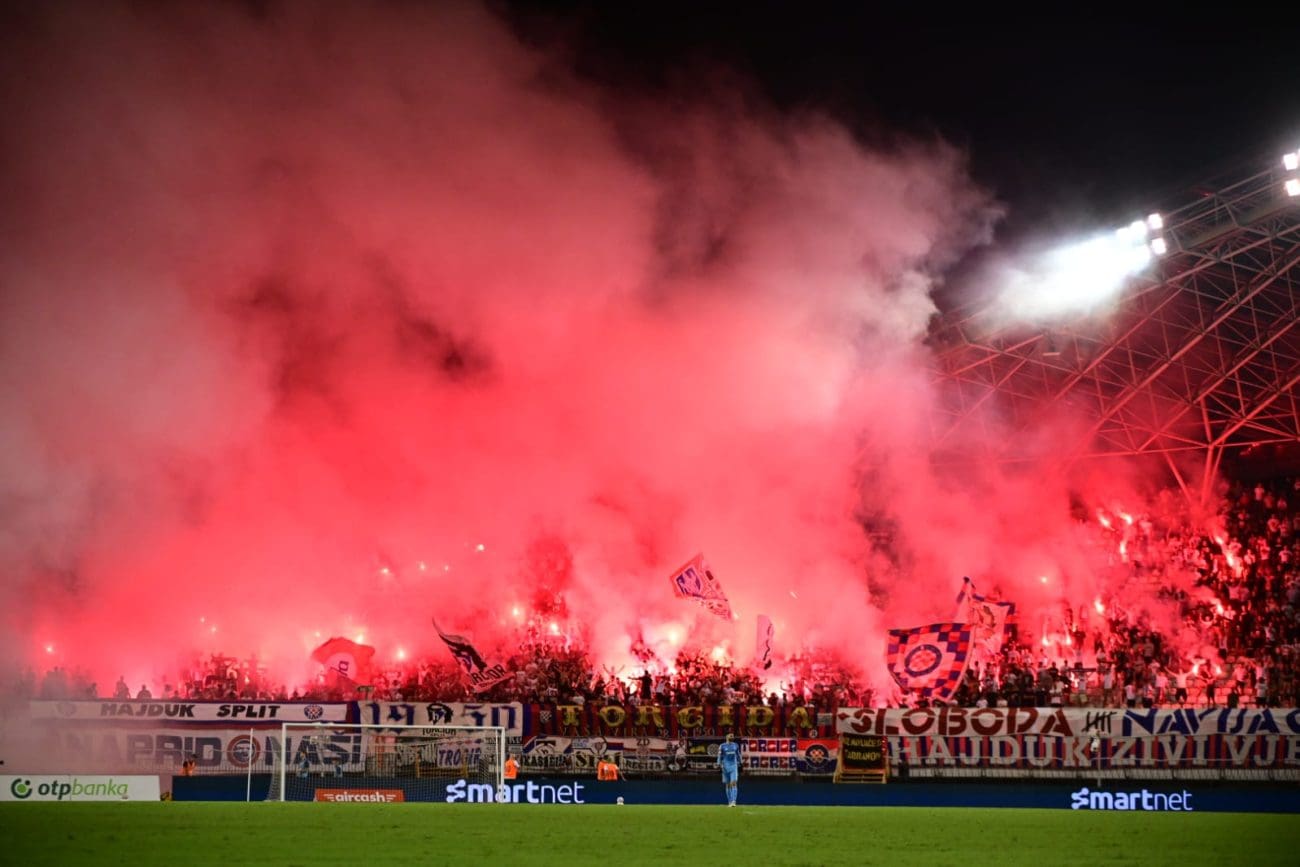 U 70. je minuti Torcida tradicionalno pripremila svoj pirotehnički arsenal, Sjever je pocrvenio od baklji, a onda i jedva vidio od dima. Dimna se zavjesa potom protegnula do zapada prema jugu, a igra je bila zaustavljena.
