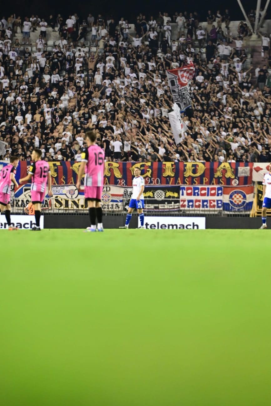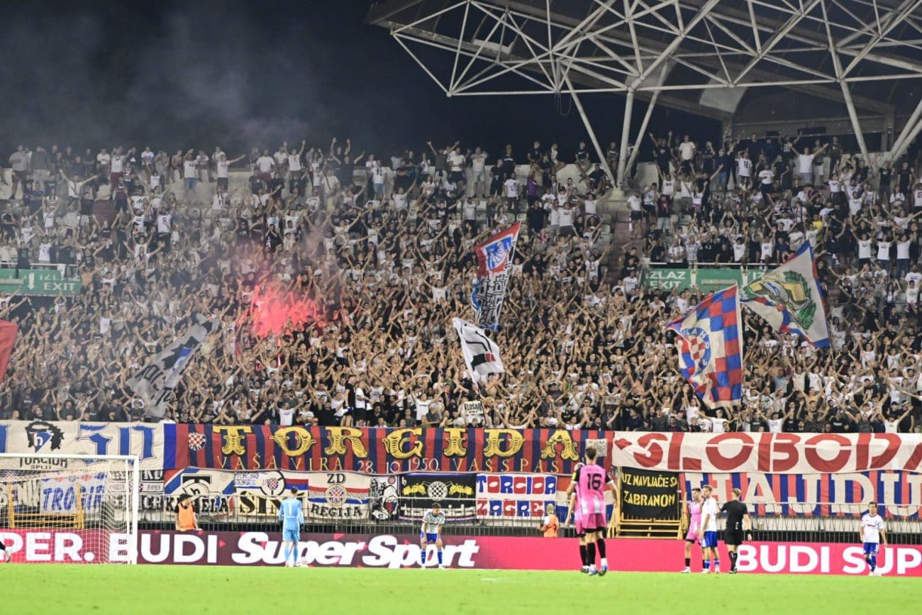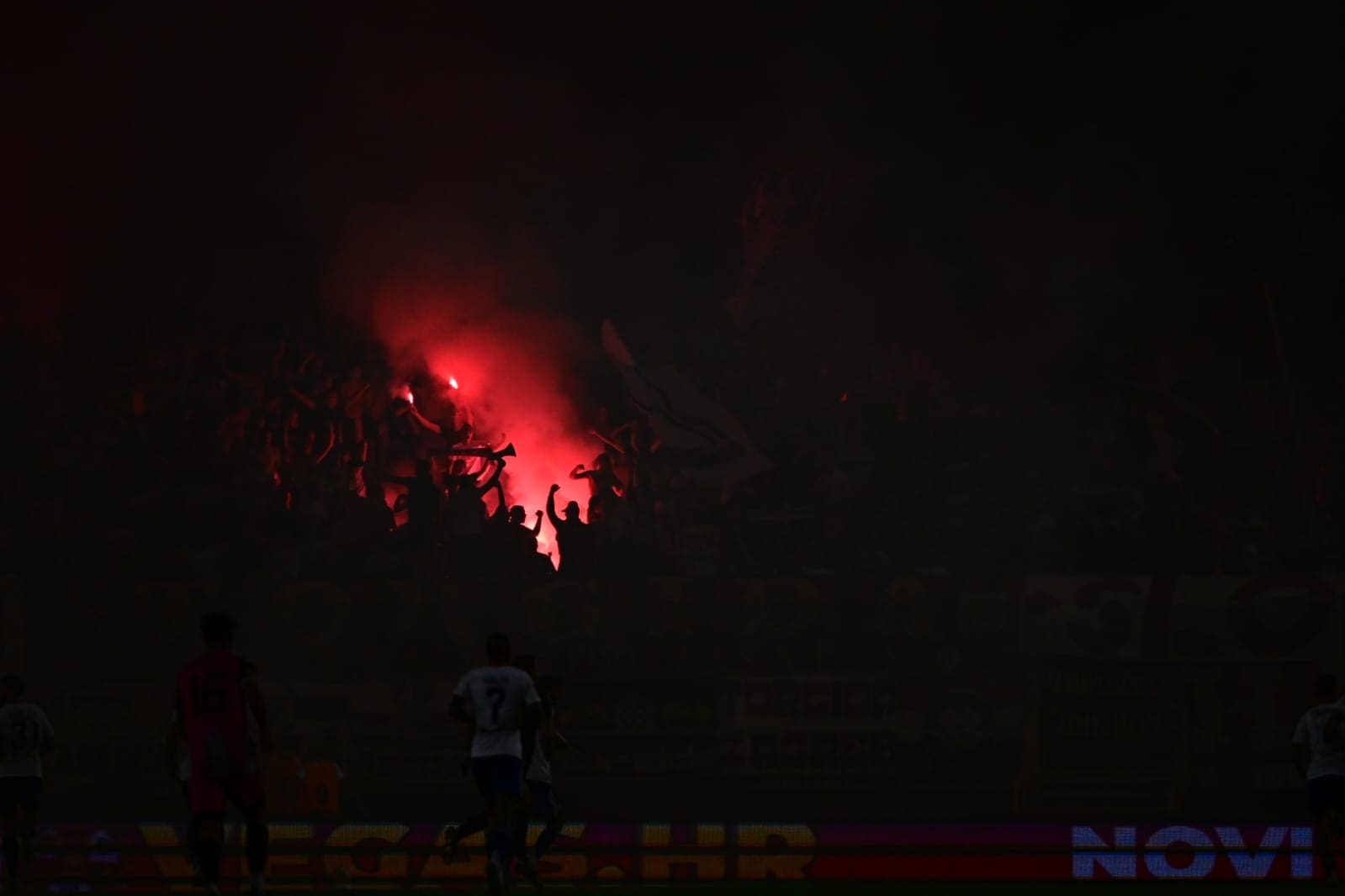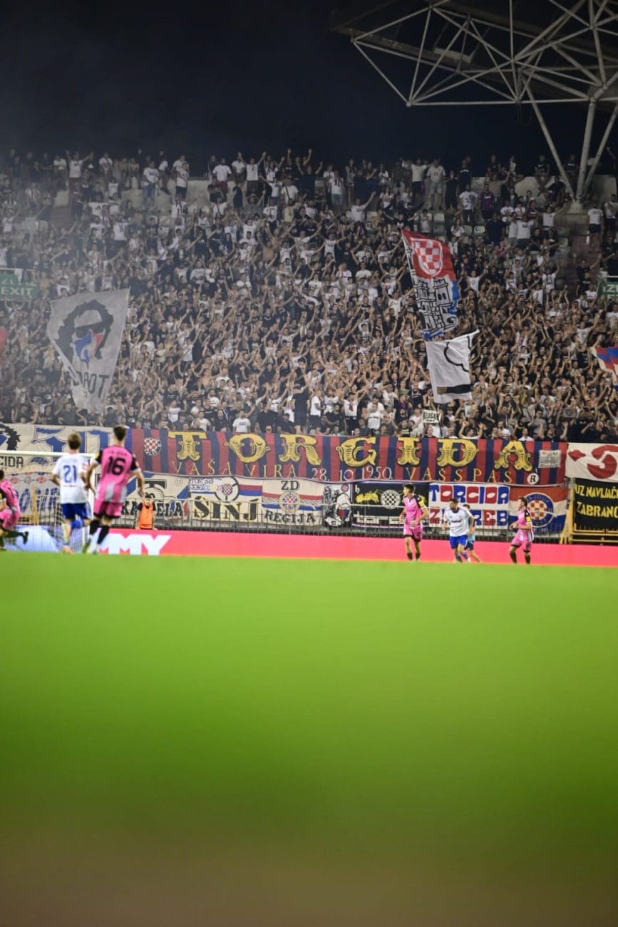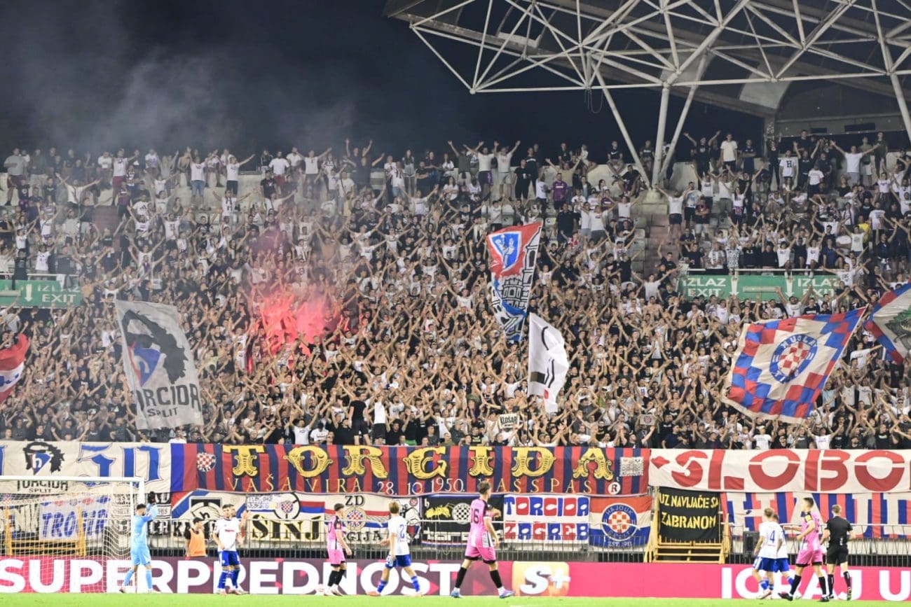 U 70. je minuti Torcida tradicionalno pripremila svoj pirotehnički arsenal, Sjever je pocrvenio od baklji, a onda i jedva vidio od dima. Dimna se zavjesa potom protegnula do zapada prema jugu, a igra je bila zaustavljena.