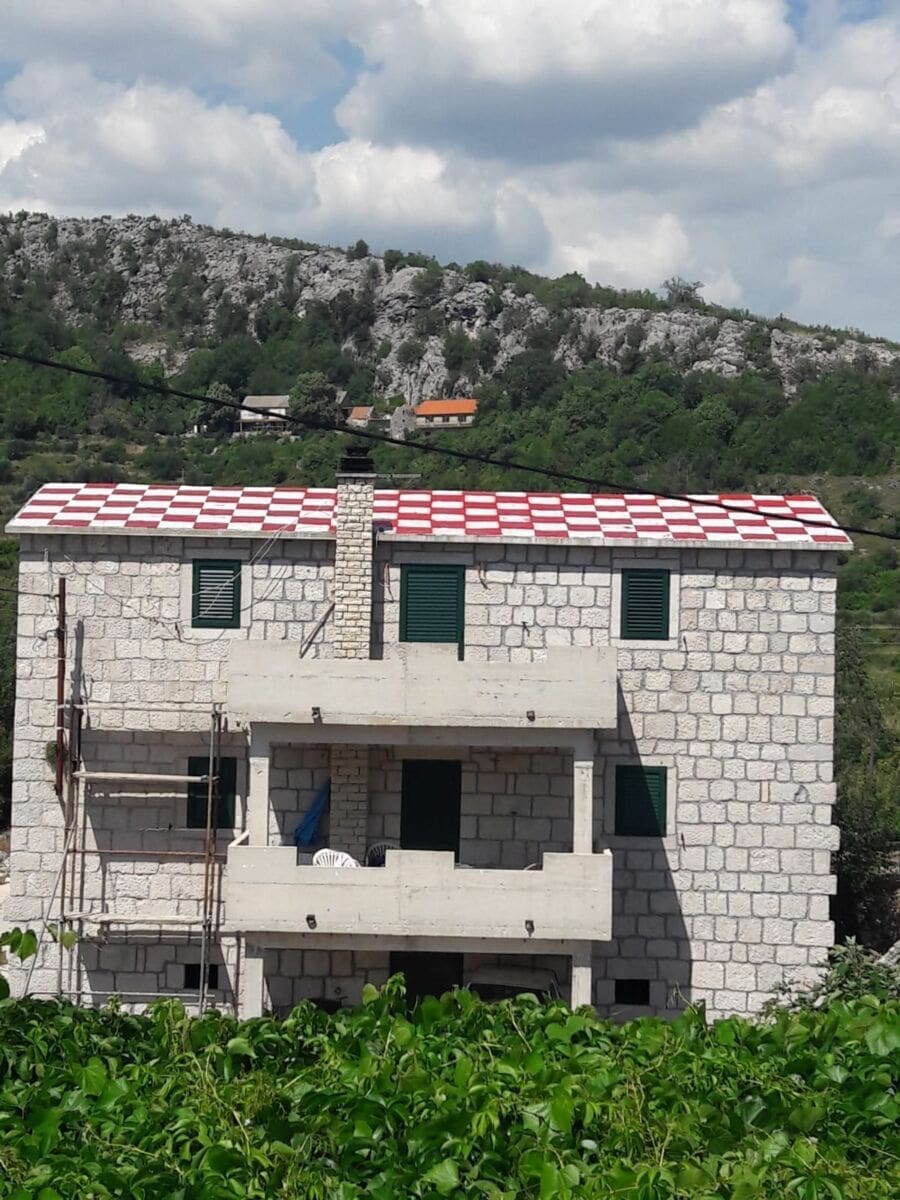 U međuvremenu nam stiže nova zanimljivost iz Poljica, točnije iz Trnbusa. Tamo je umjetnik Ante Jurić zvani Mrgud danima bojao krov svoje kuće u kockice hrvatskog grba. Radi se o površini od 100 kvadrata.