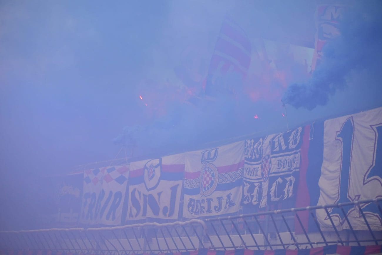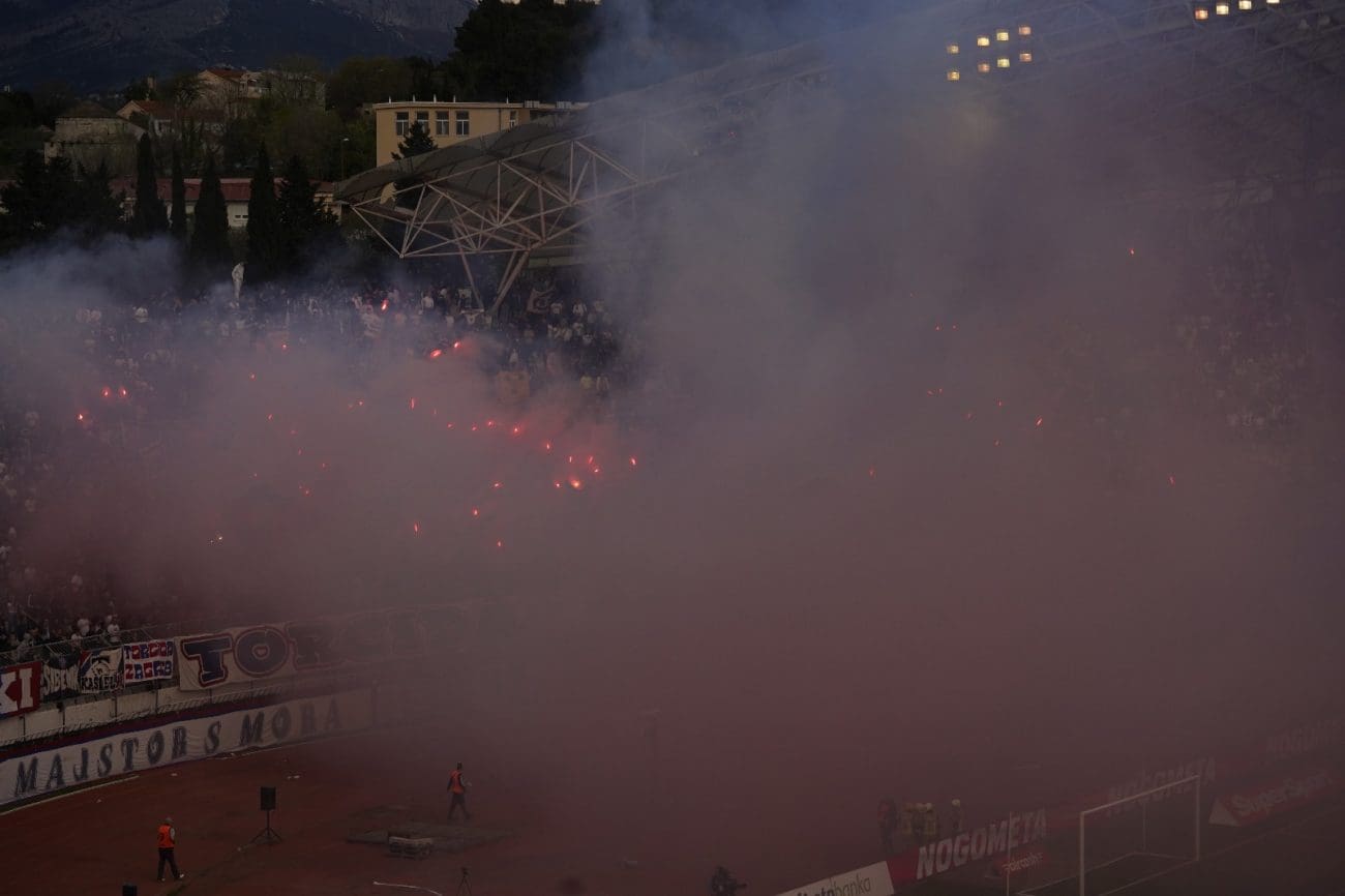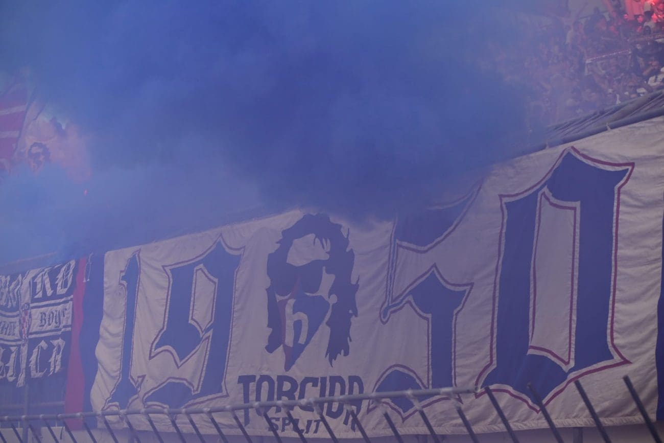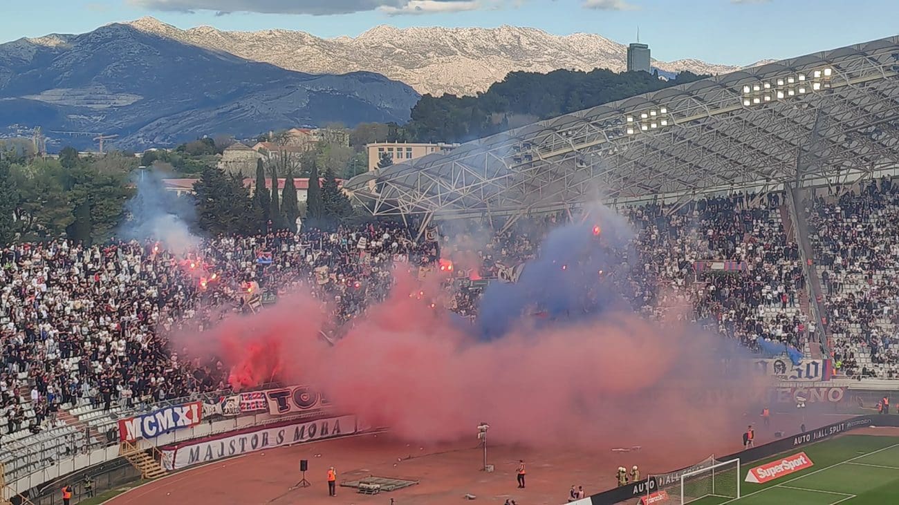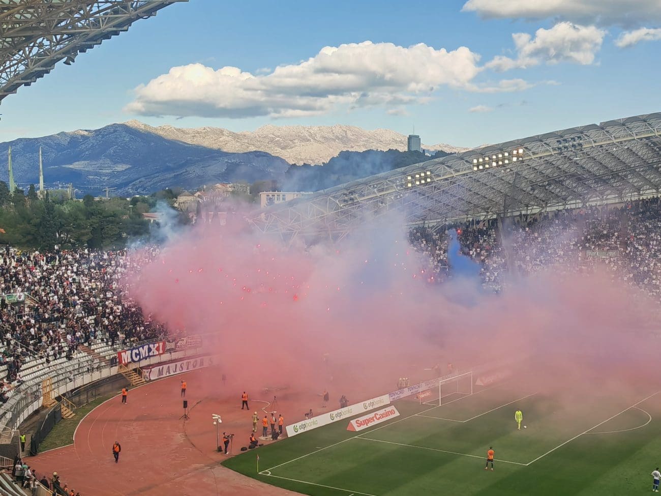 Torcida je potom zapalila dvije bengalke i jedan topovski udar, a navijanje iz utrobe Poljuda poraslo je za nekoliko decibela. Potom su zapjevali "Koliko volim ja tvoje pobjede".
