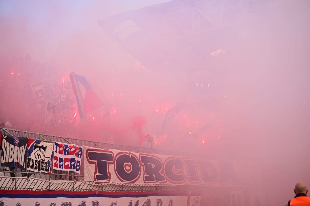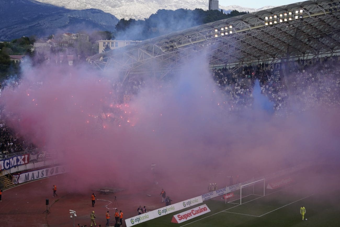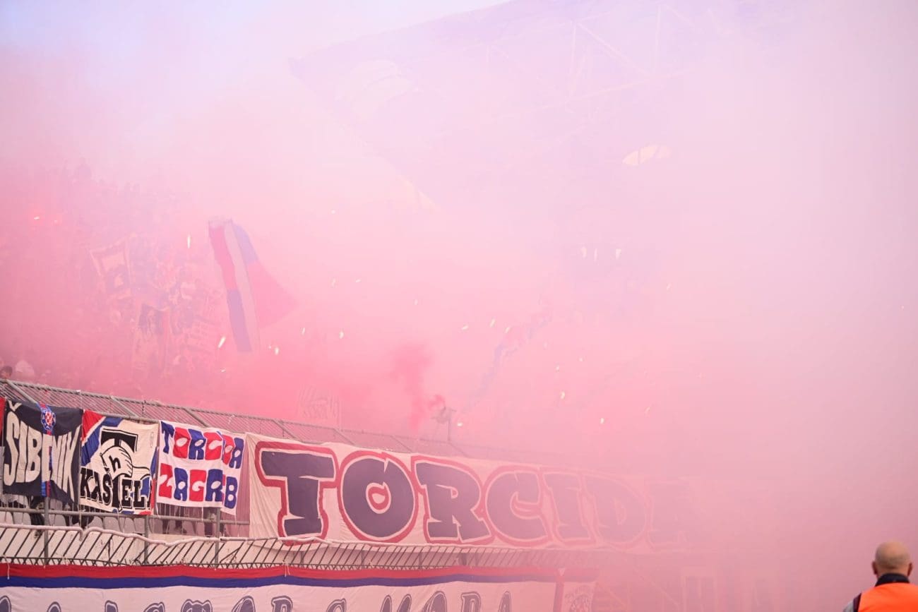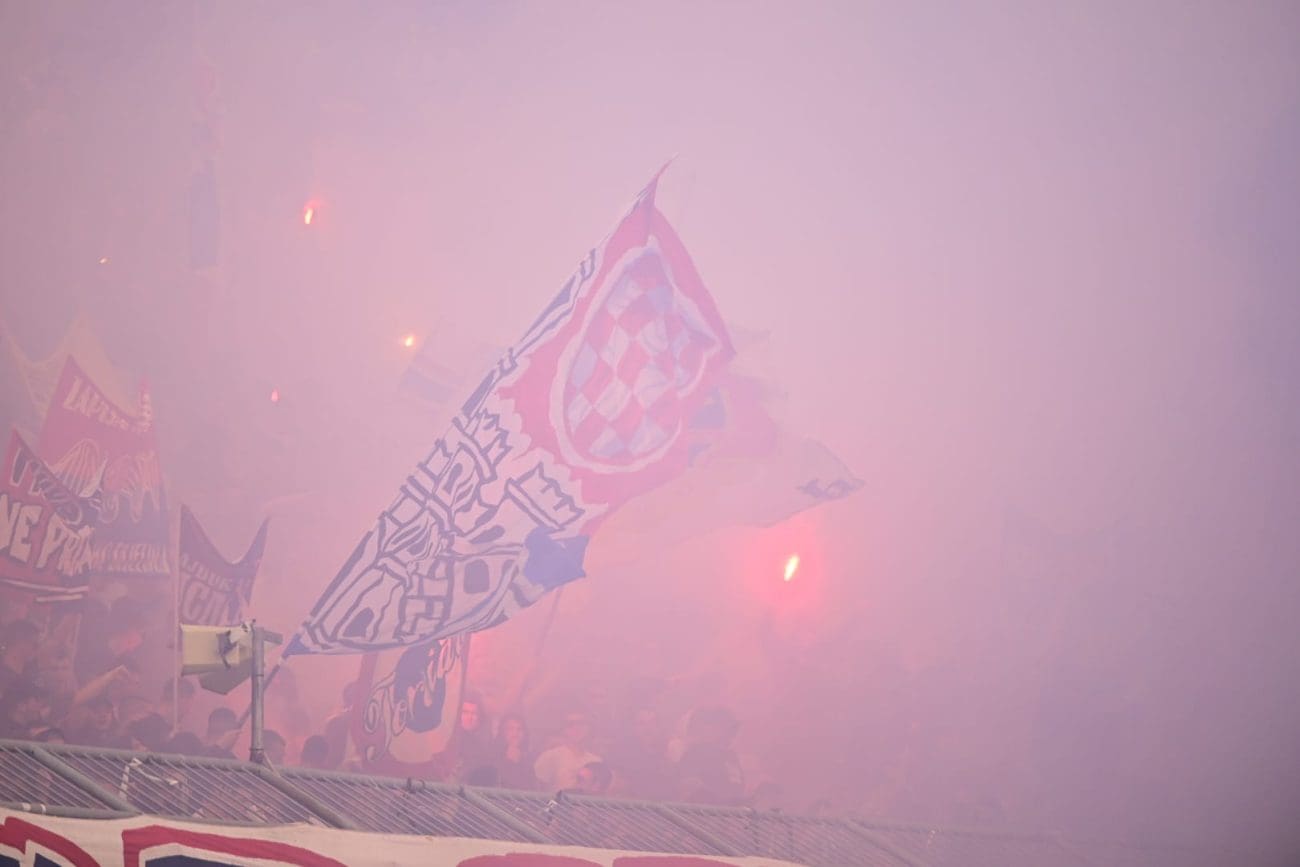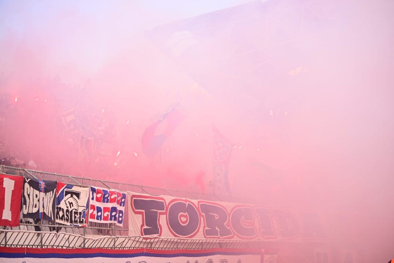 Torcida je potom zapalila dvije bengalke i jedan topovski udar, a navijanje iz utrobe Poljuda poraslo je za nekoliko decibela. Potom su zapjevali "Koliko volim ja tvoje pobjede".