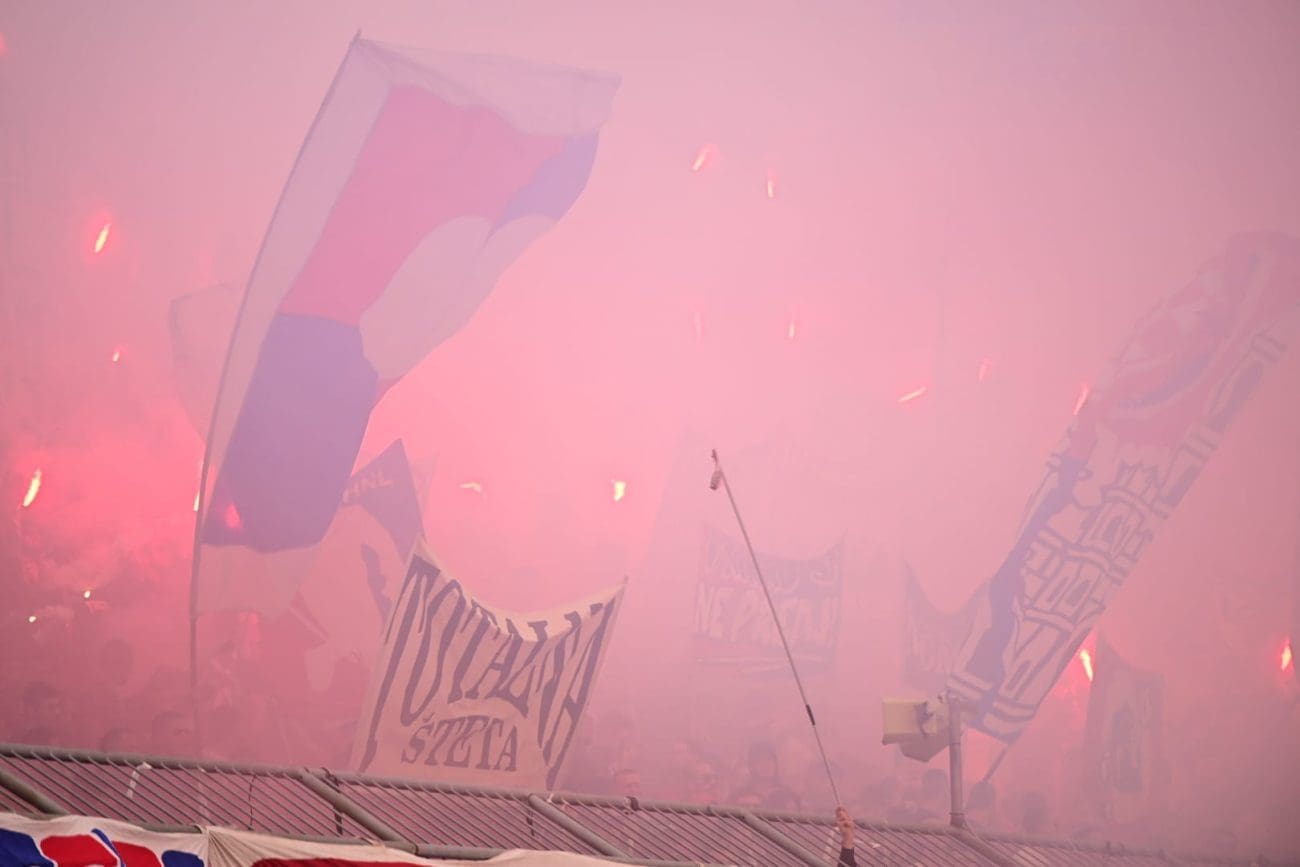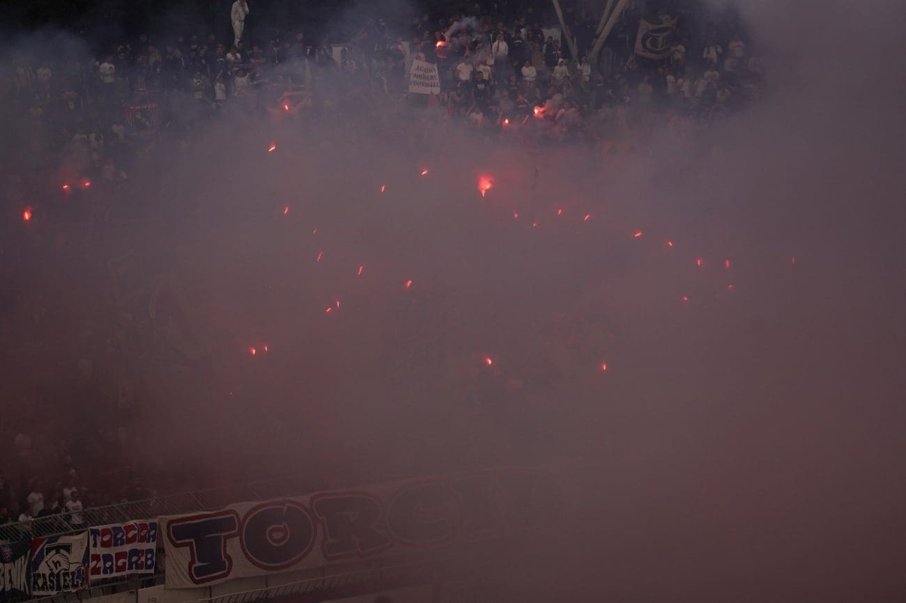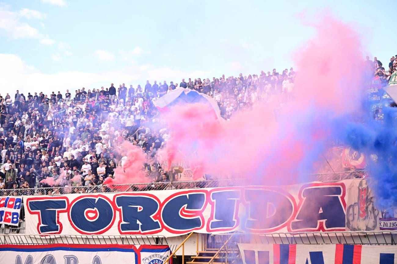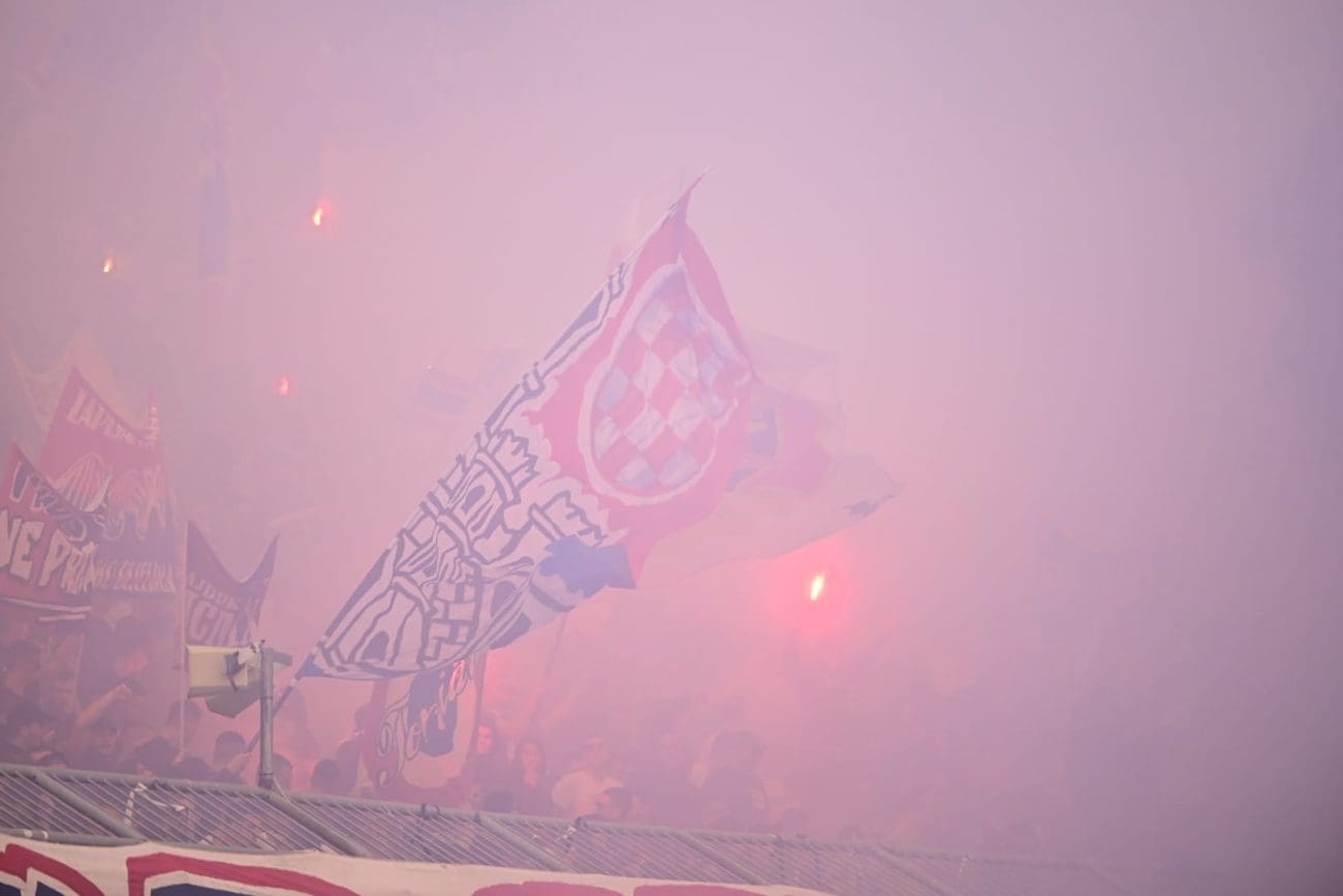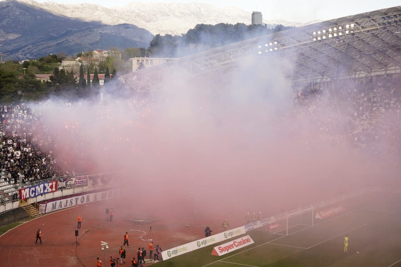 Torcida je potom zapalila dvije bengalke i jedan topovski udar, a navijanje iz utrobe Poljuda poraslo je za nekoliko decibela. Potom su zapjevali "Koliko volim ja tvoje pobjede".