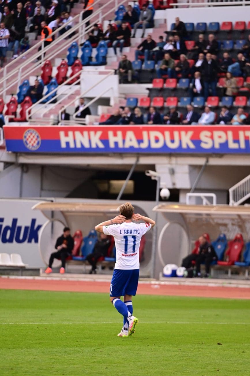U 57. je minuti Livaja krasno proigrao Rusyna, a njega je s leđa srušio Cvek koji je dobio izravni crveni karton. Rusyn je pao ispred kaznenog prostora, a dosuđen je slobodni udarac za Hajduk. Izveo ga je Rakitić koji je matirao nemoćnog Filipovića za erupciju Poljuda i vodstvo Hajduka od 1:0.