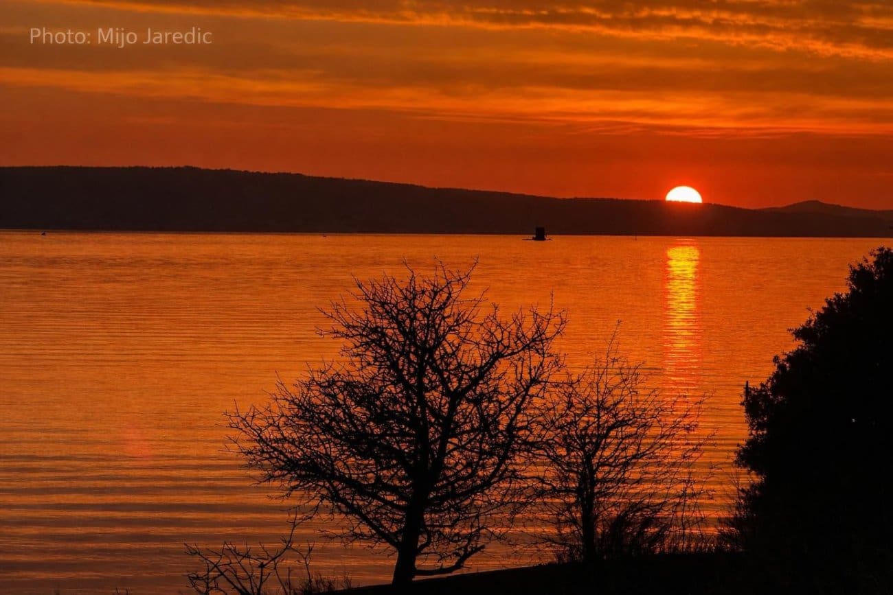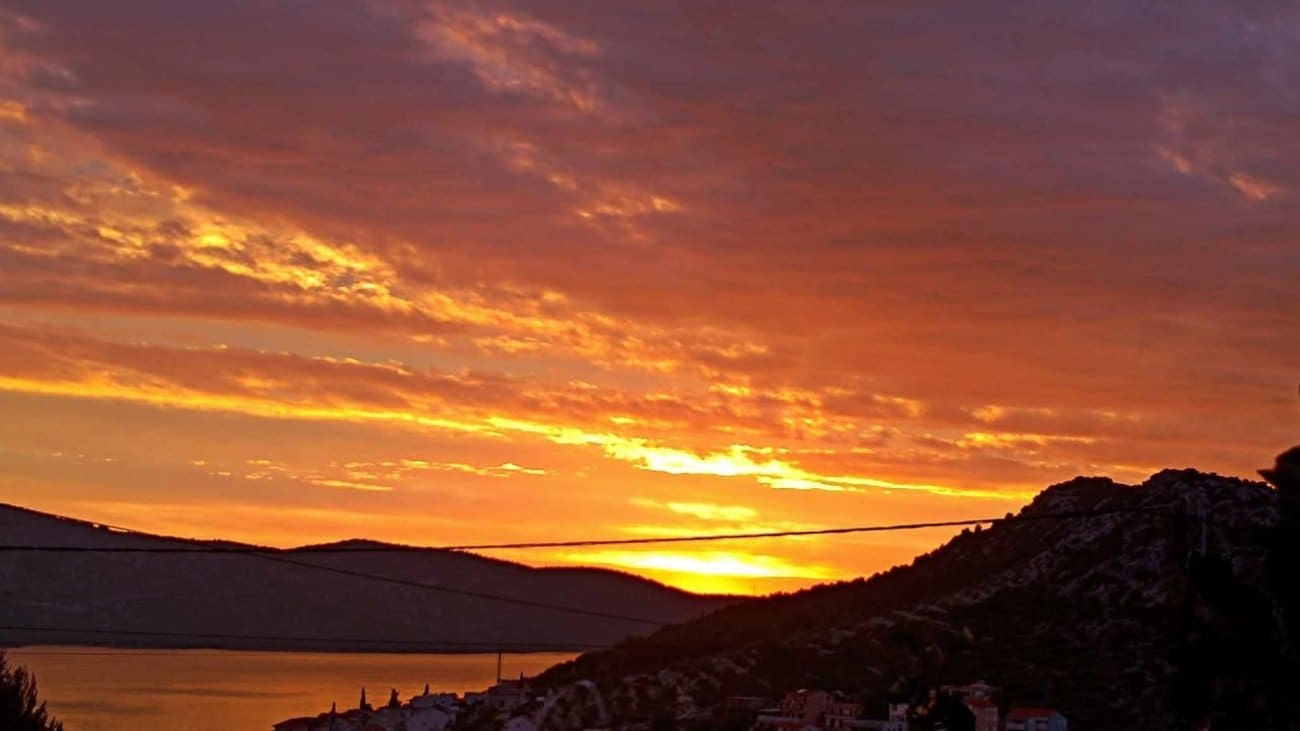 Gotovo na cijelom Jadranu mogao se vidjeti vrlo lijep zalazak Sunca. Nebo je bilo intenzivno crvene ili narančaste boje, a u kombinaciji s morem na kojem je vladala bonaca, prizori su bili još ljepši.