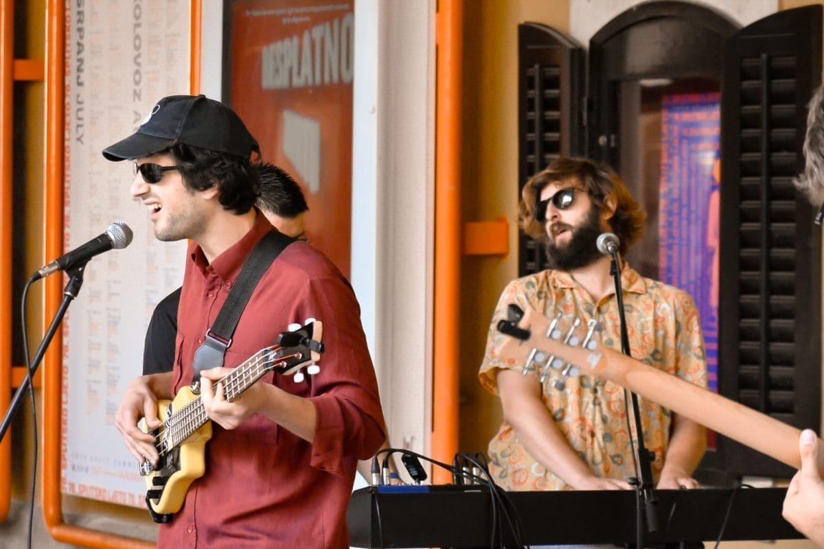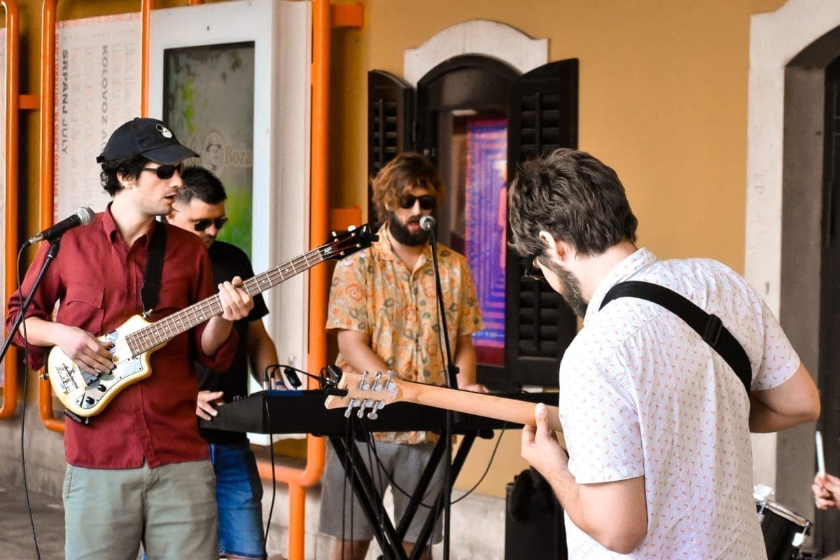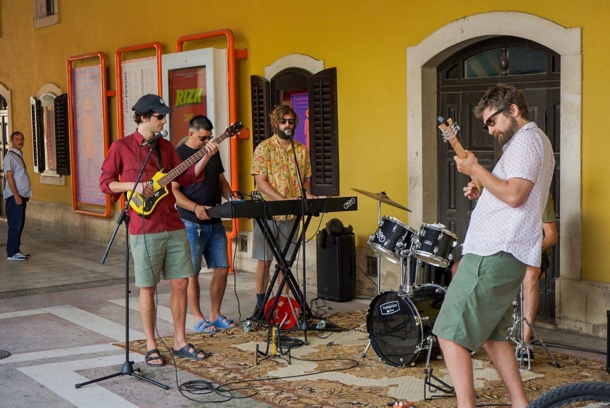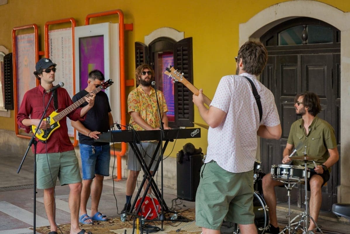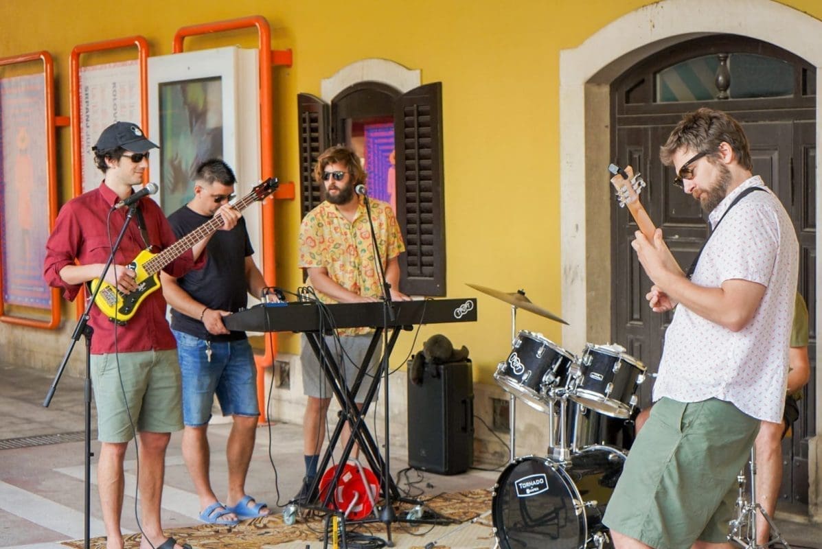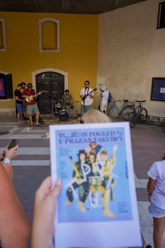 U predstavi igraju Mijo Jurišić (Dživo), Goran Marković (Krist), Donat Zeko (Lale) i Stipe Jelaska (Lule/Luka). Već je i sama najava bila spektakl u malom – nekoliko „uspješnica“ sklepanog benda izvedeno je pred nikad šarolikijom (ne)kazališnom publikom, a sve je dodatno pospješeno intendantom u ulozi domaćina koji krijepi okupljene kavom, dok neki od prolaznika, ne sluteći kakva se umjetnička priča krije iza neobičnih glazbenika, ostavljaju sitniš u šeširu pred bendom.