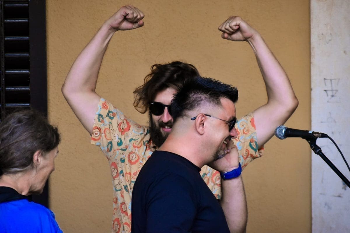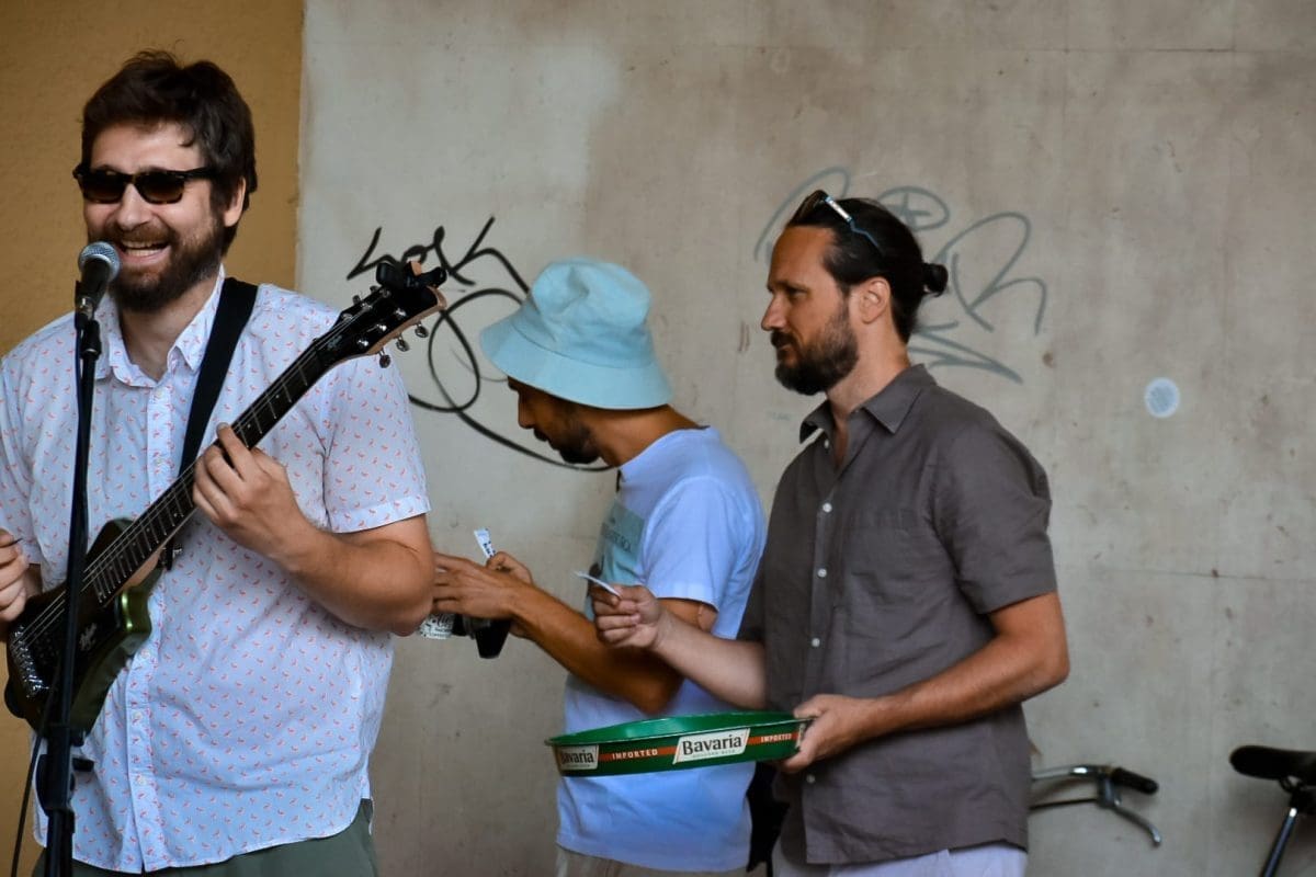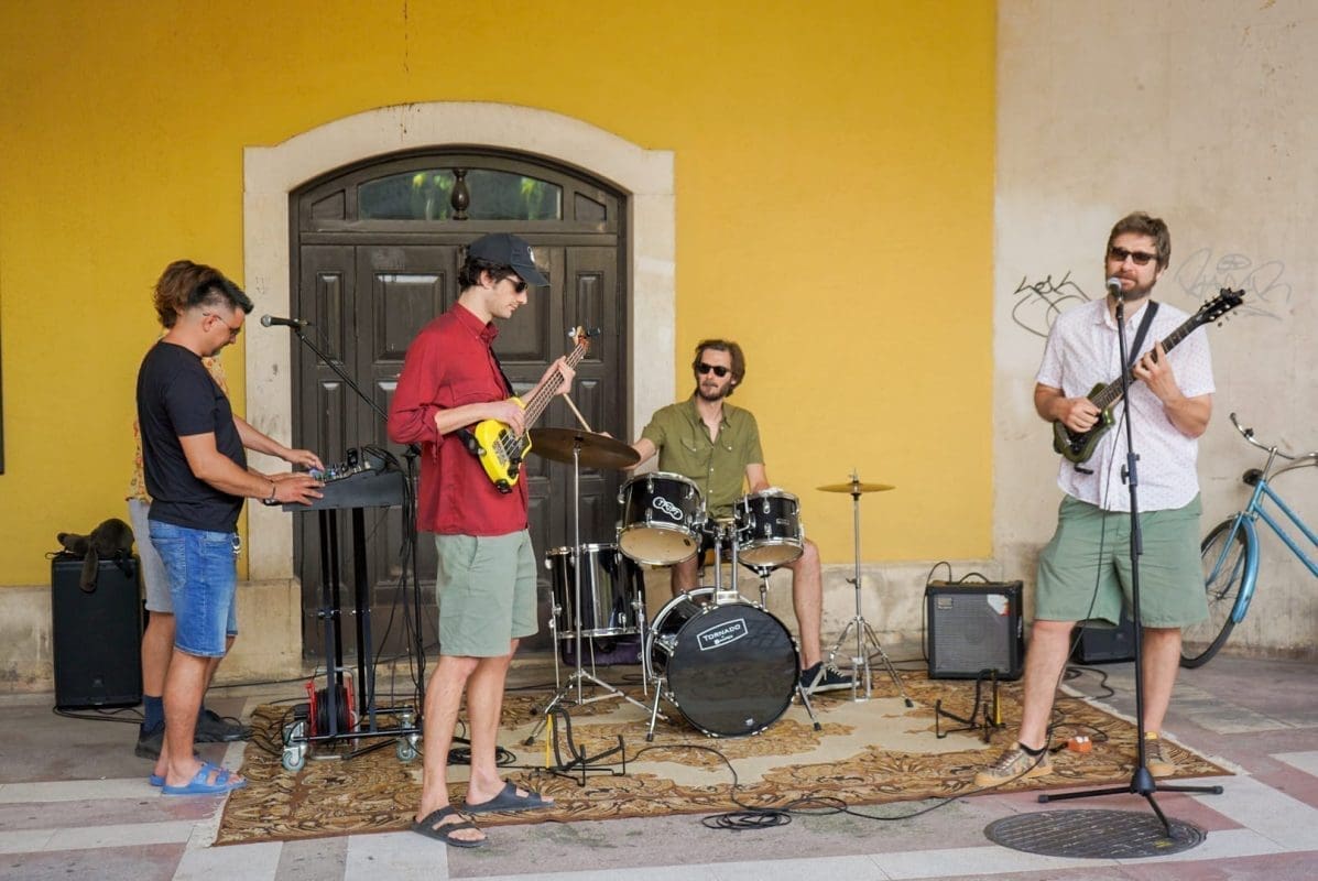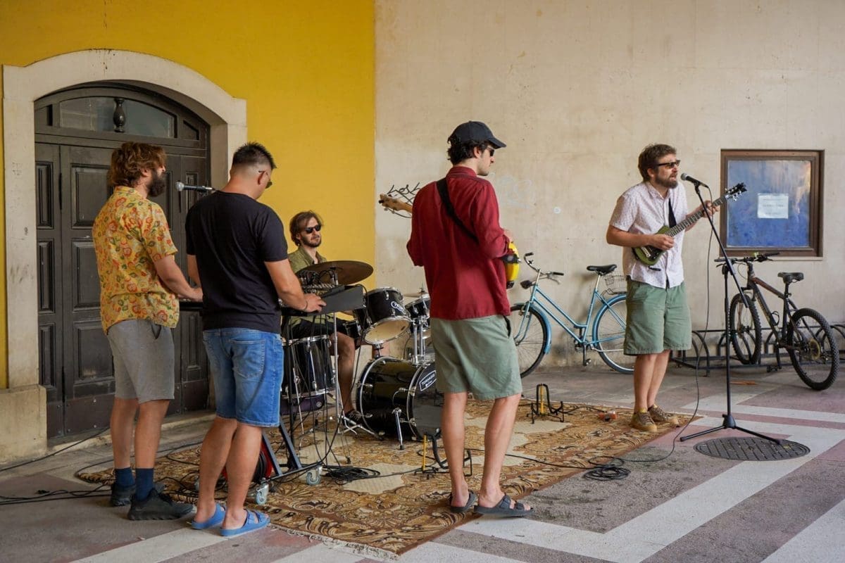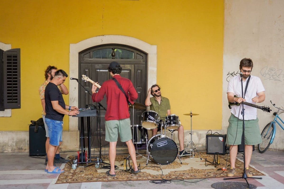 U predstavi igraju Mijo Jurišić (Dživo), Goran Marković (Krist), Donat Zeko (Lale) i Stipe Jelaska (Lule/Luka). Već je i sama najava bila spektakl u malom – nekoliko „uspješnica“ sklepanog benda izvedeno je pred nikad šarolikijom (ne)kazališnom publikom, a sve je dodatno pospješeno intendantom u ulozi domaćina koji krijepi okupljene kavom, dok neki od prolaznika, ne sluteći kakva se umjetnička priča krije iza neobičnih glazbenika, ostavljaju sitniš u šeširu pred bendom.