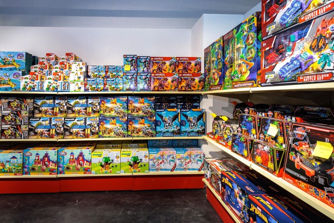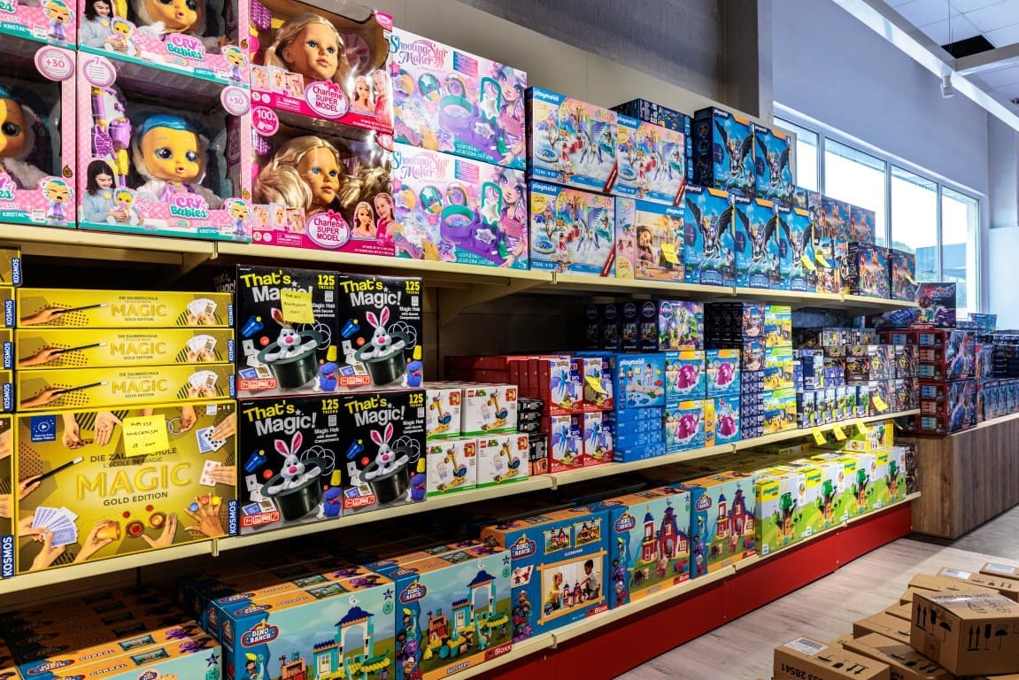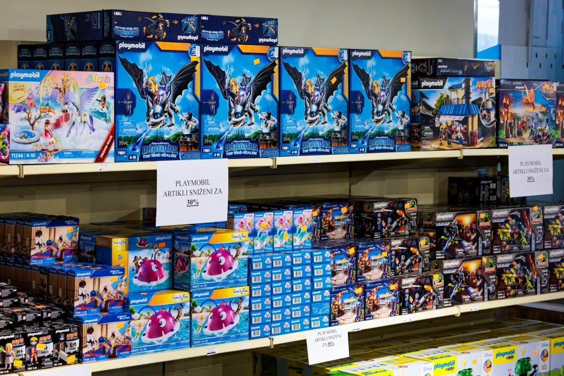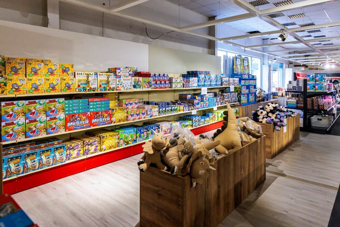 Prostor od tisuću metara kvadratnih u početku je bio popunjen artiklima iz dva segmenta - kućanstvo te igračke i zabava. Tako se na policama moglo pronaći, slikovito rečeno, sve od igle do lokomotive. Od kuhinjskih setova, posuđa, kućanskih stvari za svakodnevnu uporabu pa sve do prestižnih brendova igračaka i plišanaca.