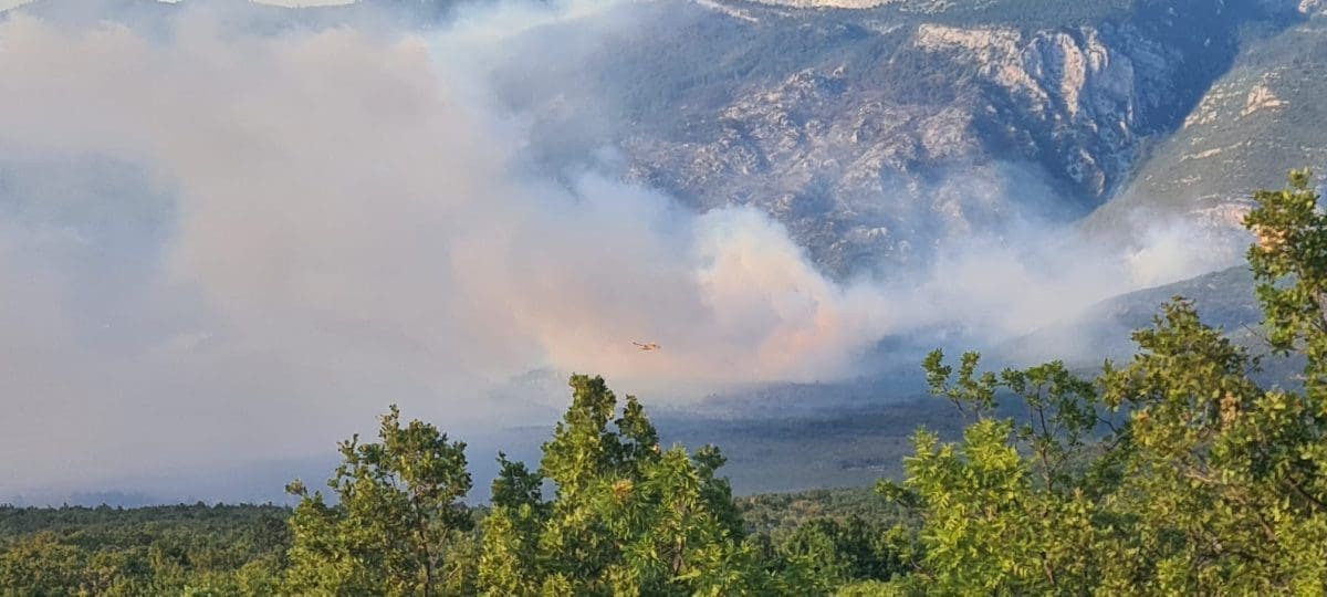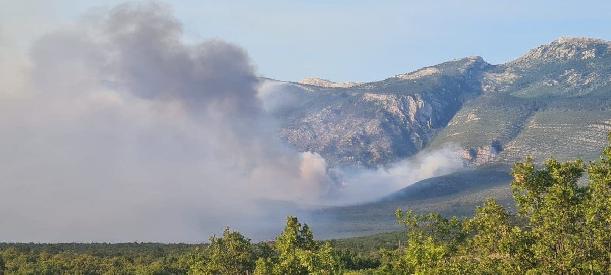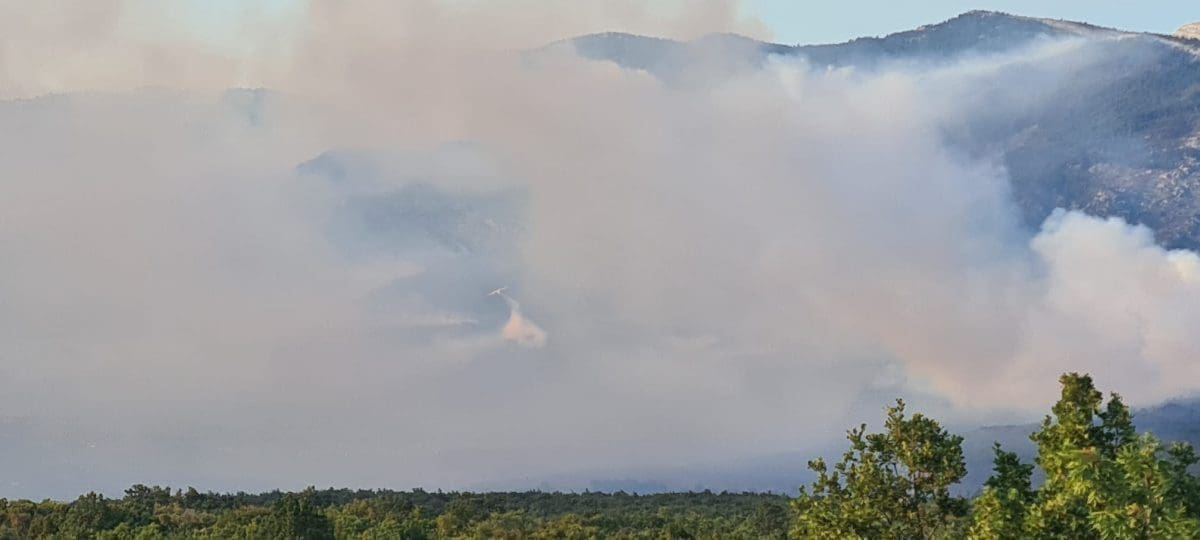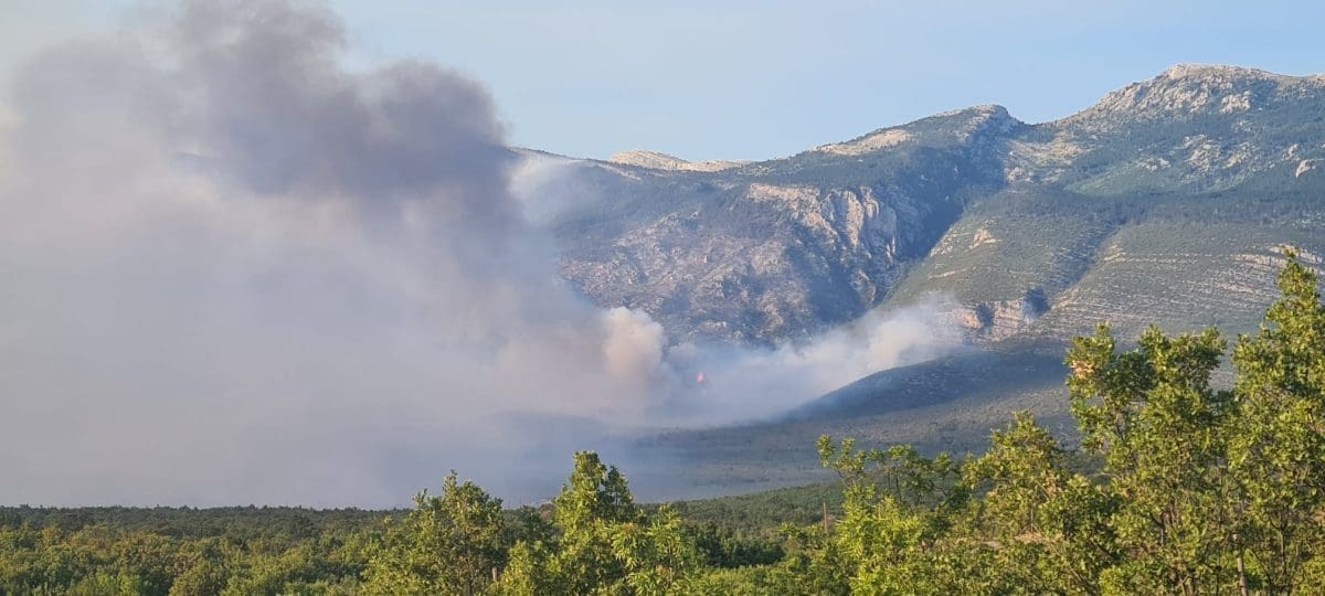 Kako smo ranije izvijestili, požar još uvijek je aktivan požar kojeg je izazvalo grmljavinsko nevrijeme na području Dinare.