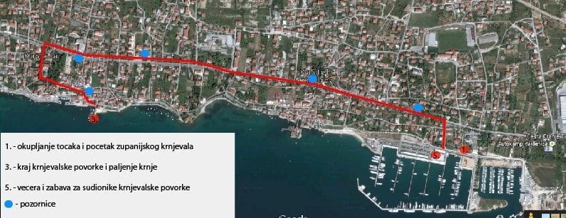 U vremenu od 14:30 do 17:30 zbog održavanja krnjevala bit će zatvorena cesta dr. Franje Tuđmana od trgovine Lidl u Kaštel Gomilici do Puta sv. Lovre (Osnovna Škola "Ostrog") u Kaštel Lukšiću.