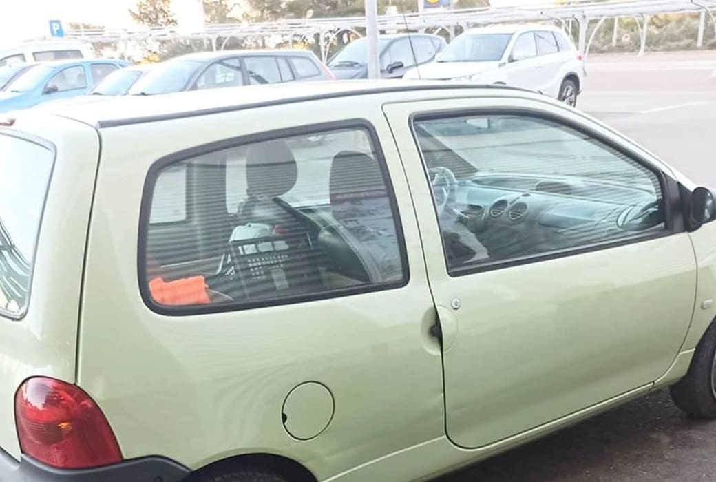 "Twečka", stoji u opisu fotografija na kojoj se vidi Renault Twingo na parkiralištu, a Twinga krase ratkape s oznakama Mercedesa.