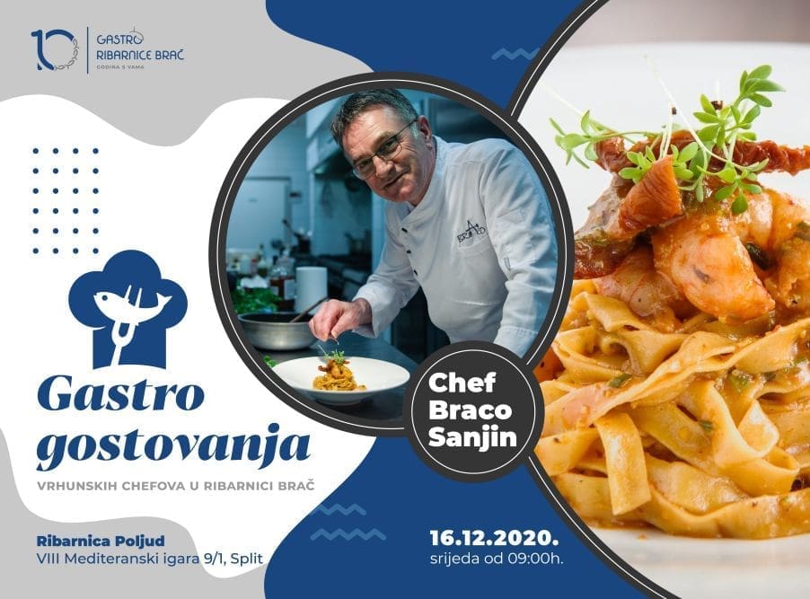 Ovu srijedu 16. prosinca u Gastro Ribarnici Brač na Poljudu nastavljaju s eventom gostovanja vrhunskih hrvatskih chefova. U goste dolazi chef Braco Sanjin, zato navratite do Gastro odjela ribarnice Poljud i ne propustite priliku da isprobate njegova četiri riblja specijaliteta po popularnim cijenama.