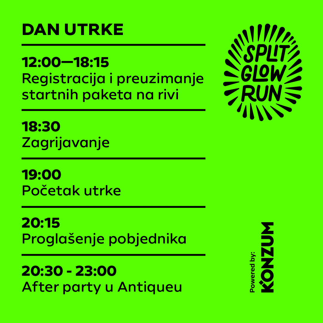 U subotu 8.10.2022. od 19:00 do 20:10 sati održava se GLOW RUN SPLIT 2022 noćna cestovna utrka.