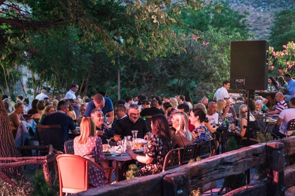 Žubor rijeke i uvijek ugodne temperature pravi su mamac za posjetitelje, što i ne čudi jer je bašta s jedne strane omeđena rijekom, a s druge jažom.