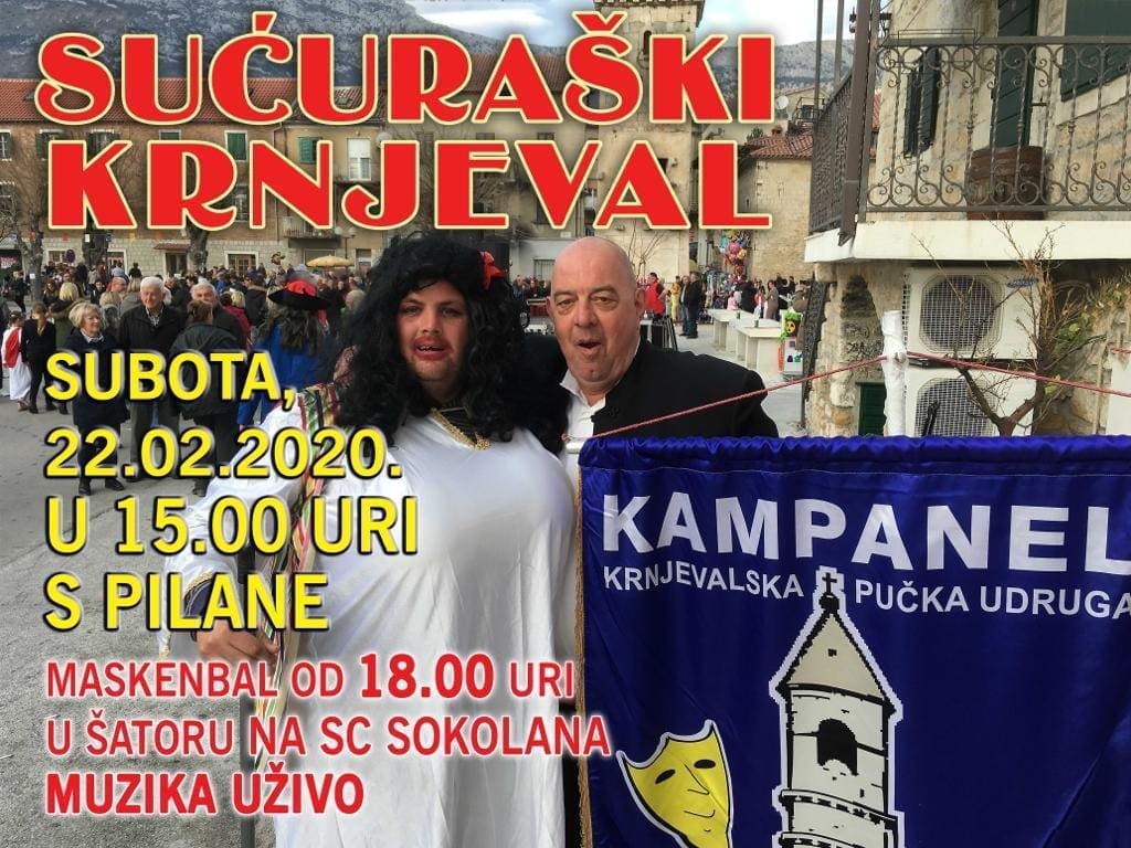 U organizaciji Krnjevalske pučke udruge Kampanel, ovu subotu 22.02.2020 u 15 sati s ''pokojne'' pilane u Kaštel Sućurcu starta tradicionalna sućuraška povorka maškara.