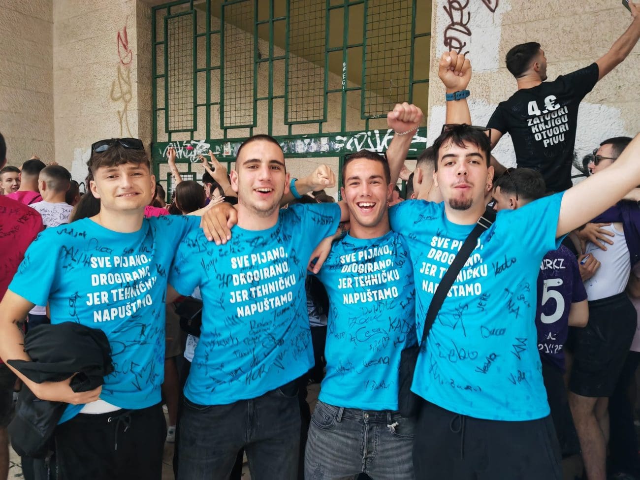 Splitski maturanti obilježili su kraj jednog važnog poglavlja – završetak srednje škole. Kao i svake godine, nije izostala ni kreativnost: generacija 2025. potrudila se osmisliti duhovite, provokativne i domišljate natpise na majicama, kojima su saželi svoje srednjoškolske dane i pokoju uspomenu.