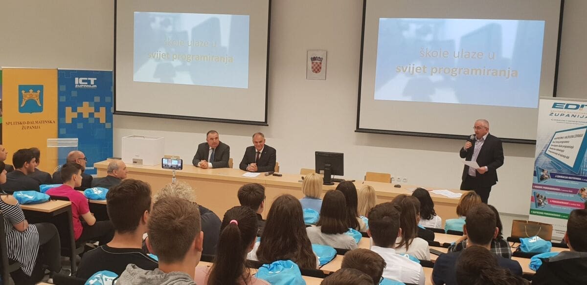 EDIT CodeSchool, kao najmasovnija u Hrvatskoj besplatna škola programiranja koja se organizira u sklopu projekta ICT županija, drugu godinu za redom okupila je 400 učenika viših razreda osnovnih i srednjih škola iz Imotskog, Makarske, Trogira, Sinja, Kaštela, Solina, Omiša, Supetra i Splita koji su radili projekte na temu Moja eko županija. Završna svečanost s uručenjem nagrada najboljim radovima u tri kategorije, održana je na Prirodoslovno-matematičkom fakultetu u Splitu.