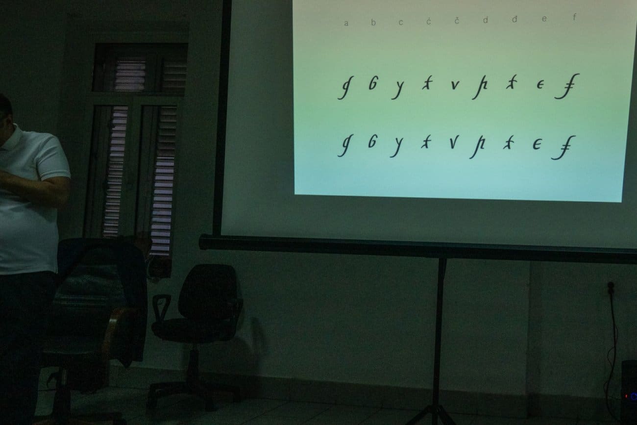 – Ne shvaćajte svoje pismo samo kao lokalni fenomen. Ono je utemeljeno u grčkom pismu, a u slavenskoj adaptaciji povezuje nas sa širokim slavenskim svijetom u kojem se koristila ćirilica. Hrvatska ćirilica udomaćila se u Poljicima, u Bosni i Dubrovniku. To su tri povezana regionalna tipa, ali svaki ima svoje posebnosti.