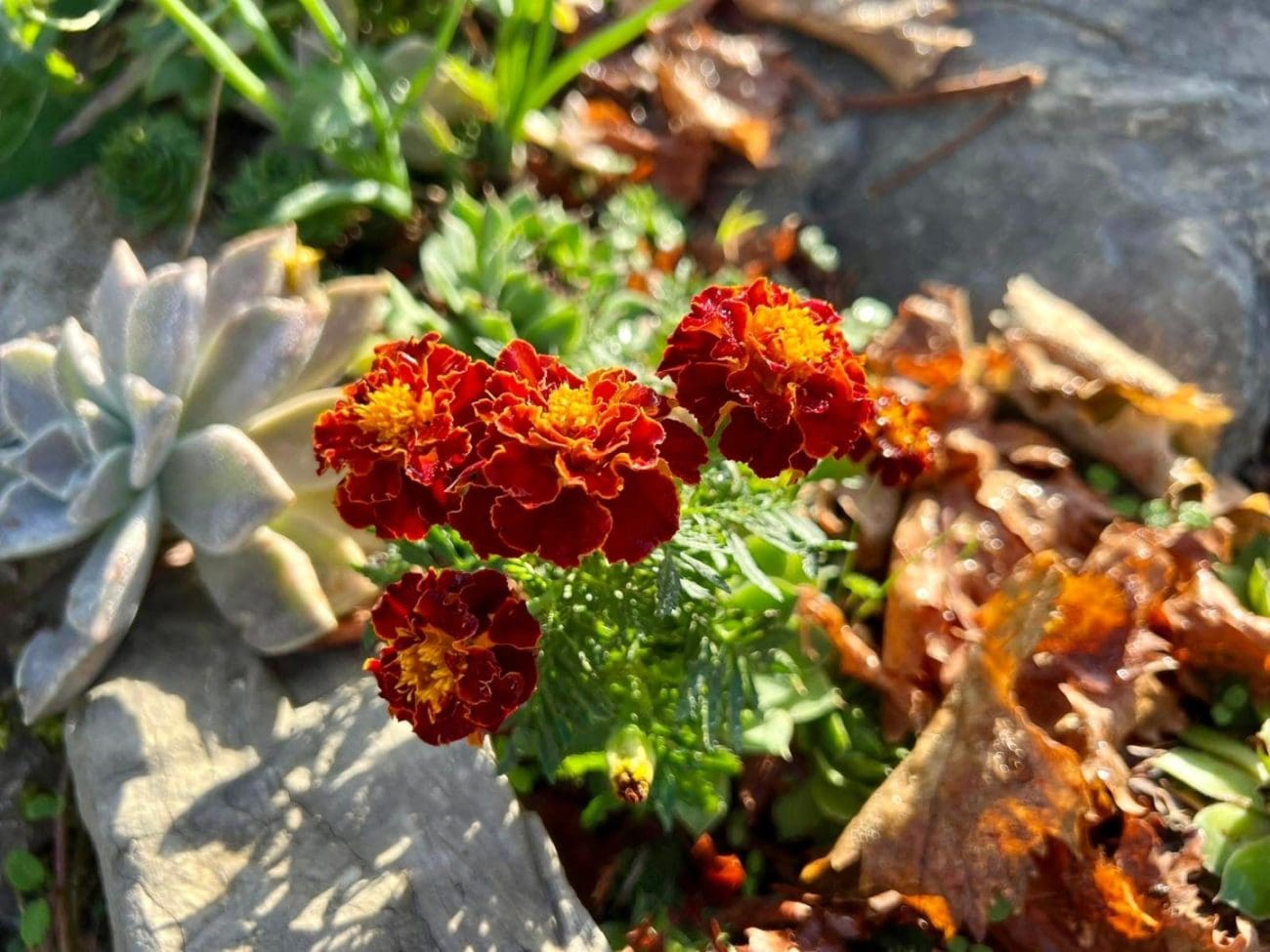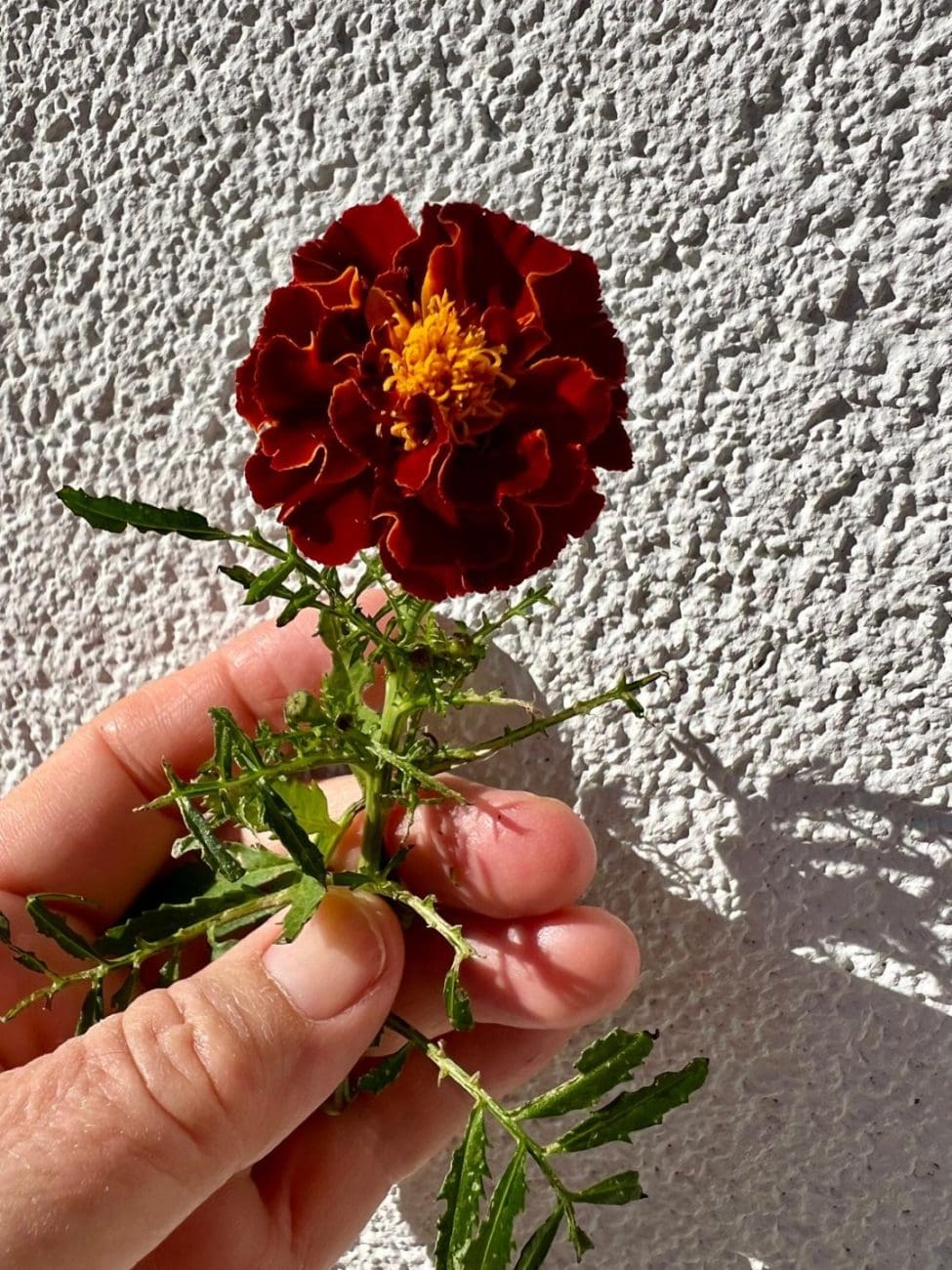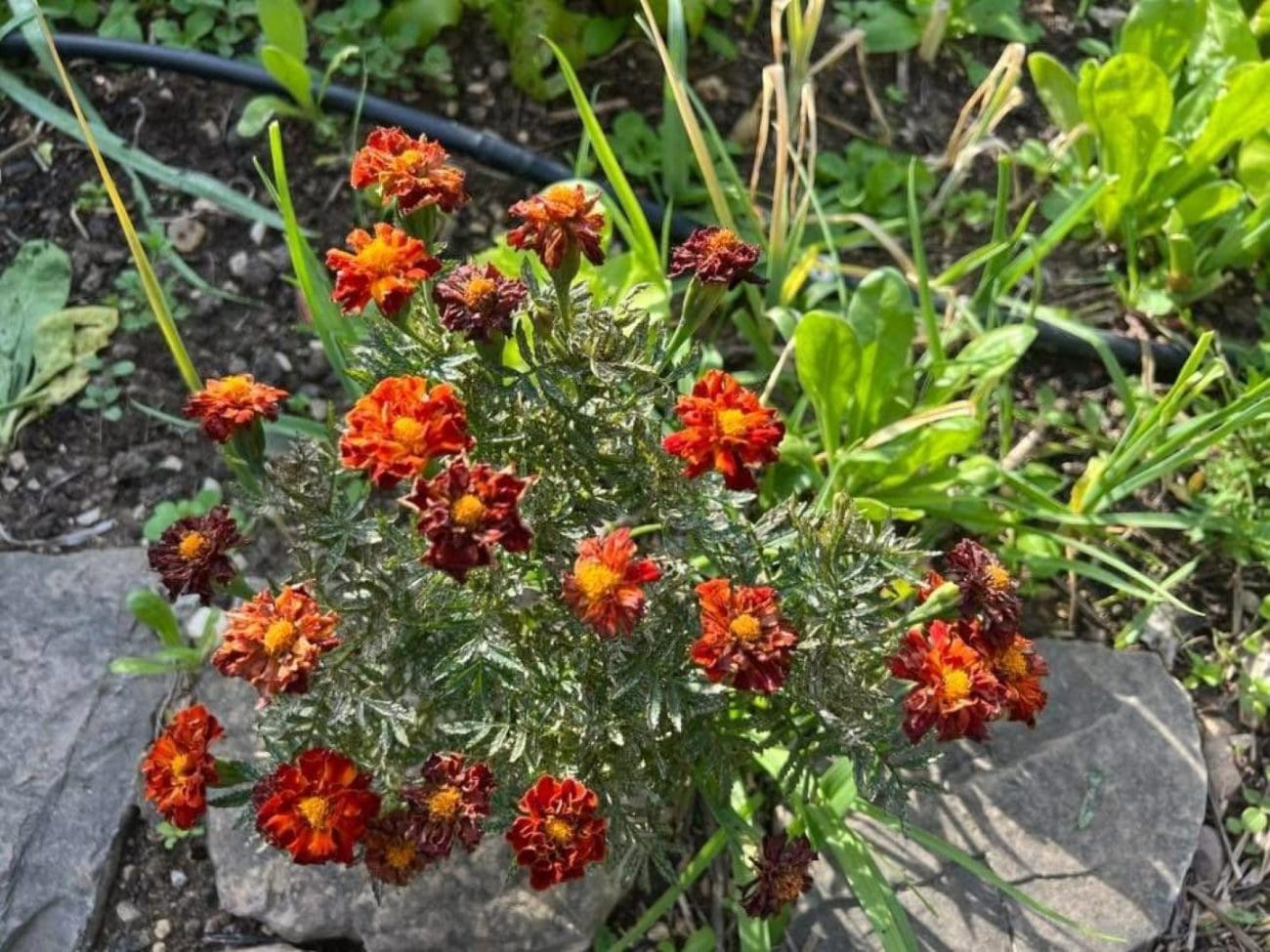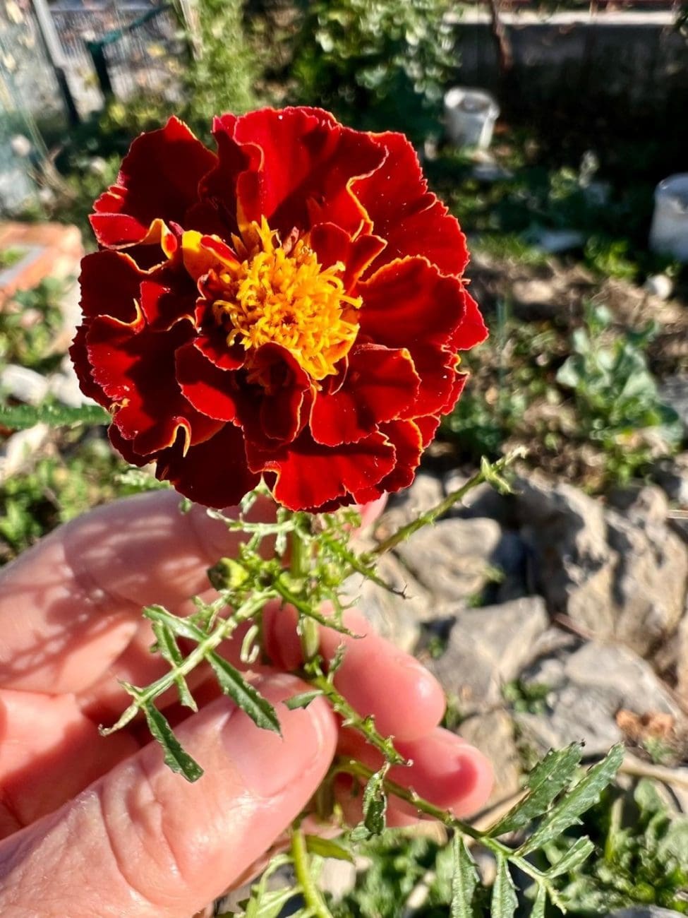 A ako niste znali, kadife imaju jedno nevjerojatno svojstvo. Naime, ne smeta im ako ih presadite u totalno rascvjetanom stanju; nastave rasti kao da se ništa nije dogodilo. Možda je i ta činjenica pokazatelj koliko su kadife posebne, a ova moja starinska, ne znam je li Tagetes erecta ili neka slična, svejedno, posebna je i po tome što: