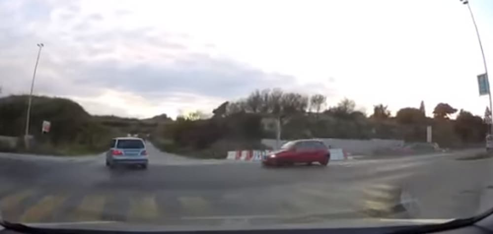 Crveni automobil je jedva izbjegao sudar.