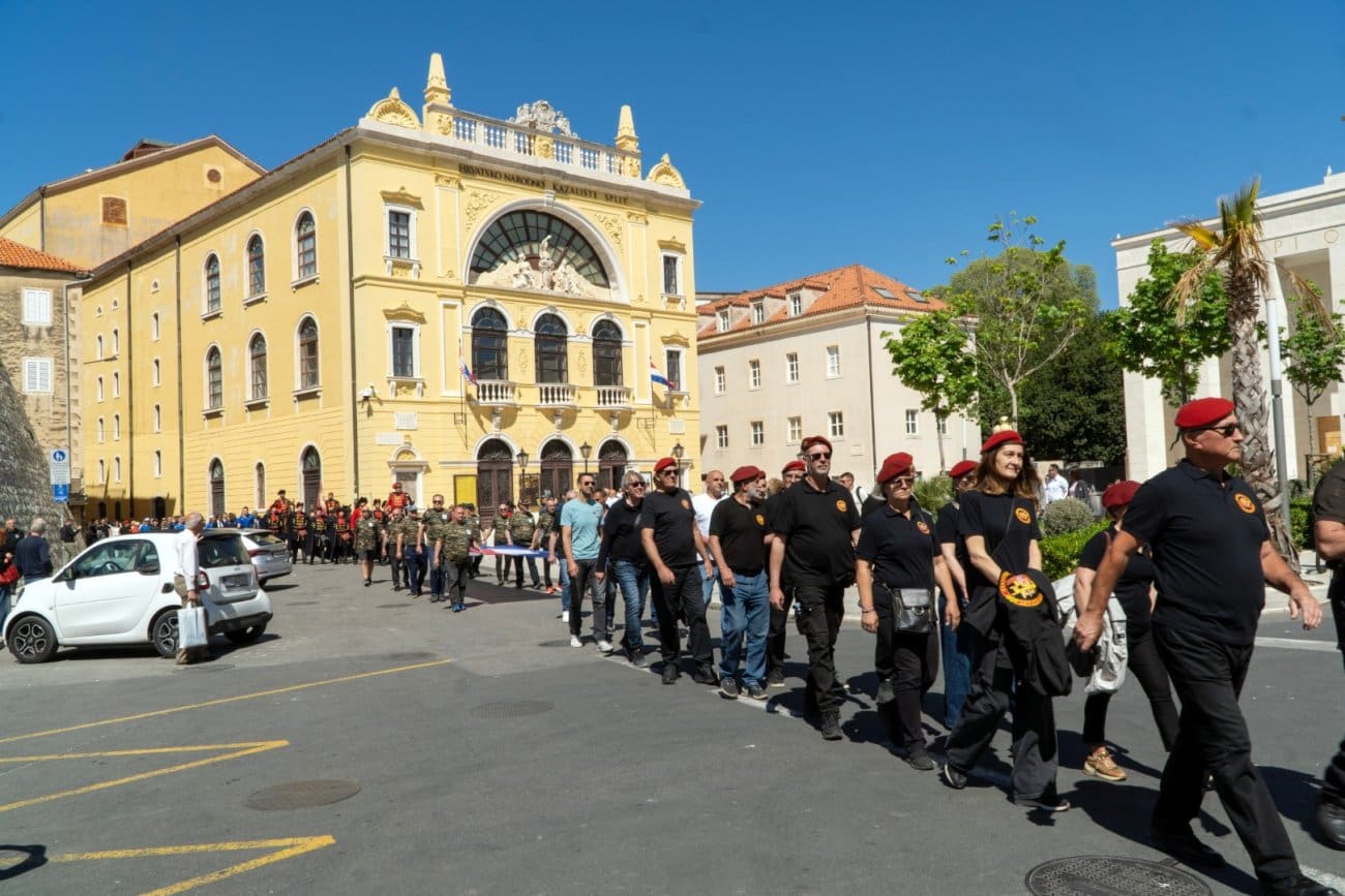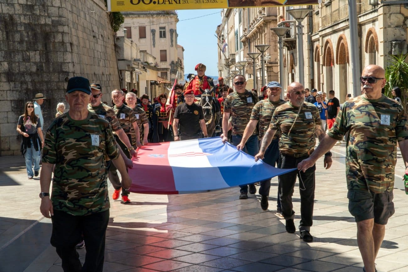 Nakon obilježavanja na Starom placu svečana kolona, predvođena zaslužnim veteranima koji su s ponosom nosili državnu zastavu, zastavu veterana 4. gardijske brigade te povijesnu Kninsku zastavu, prošla je rutom od Starog placa, preko Hrvojeve ulice, sve do Obale hrvatskog narodnog preporoda.