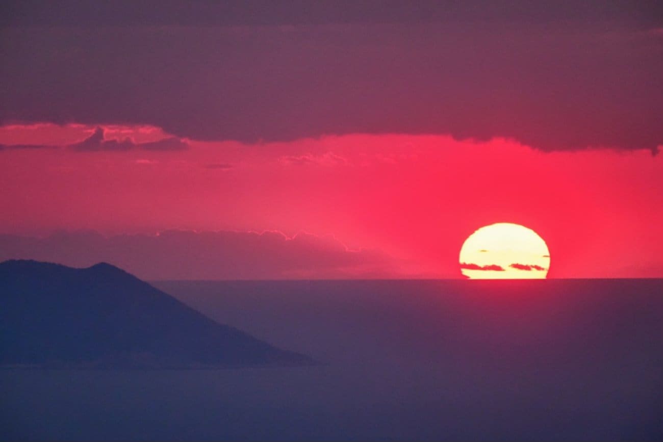 Zalazak sunca s Huma pružio je prizor vrijedan pažnje. Sunce je zašlo desno od otoka Svetac (Sv. Andrija), dok su posljednje zrake obasjale obrise talijanske obale, odnosno Apenina, vidljivih u daljini.