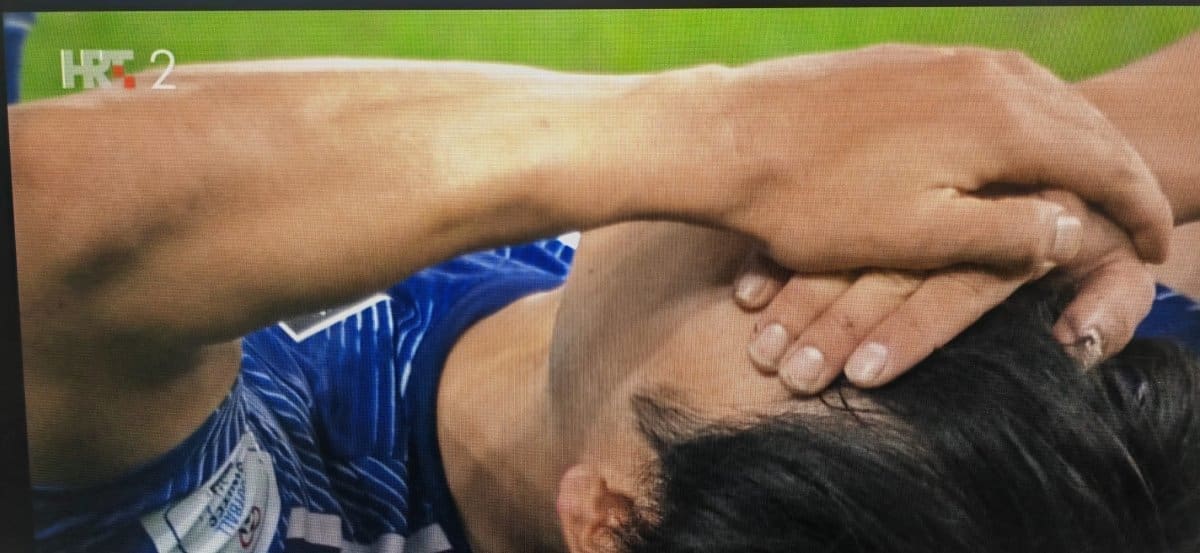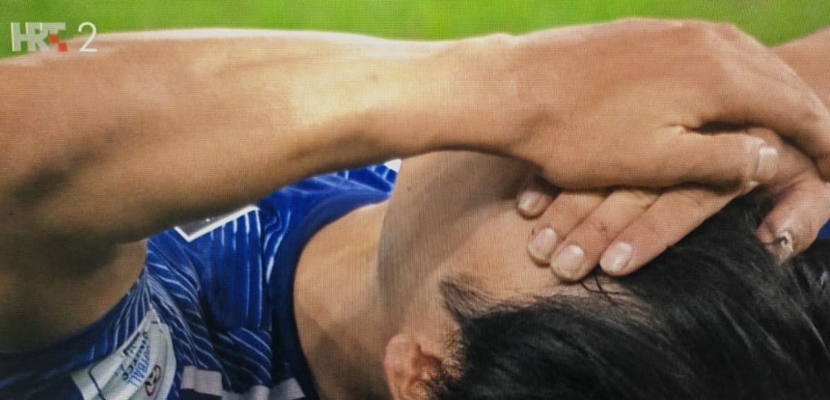 39' Sudar Petkovića i Yoshide, naš igrač se brzo pridiže, Japanac treba pomoć na terenu.