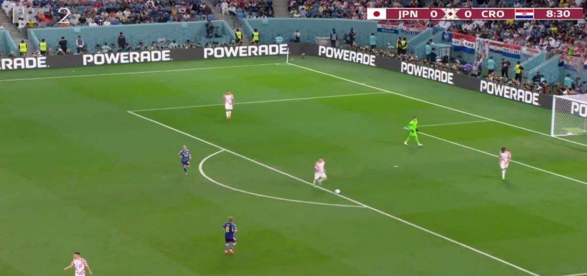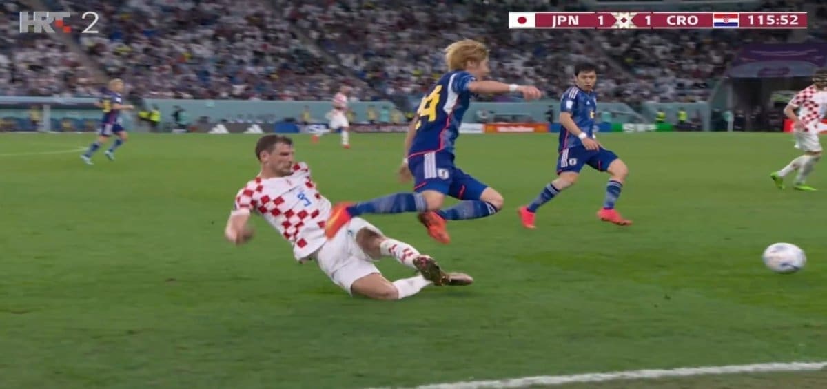 23' Polovica je prvog poluvremena. Japan preuzima kontrolu i više prijeti. Hrvatska ne izgleda najbolje, Gvardiol je na travi, dobio je udarac u prepone.