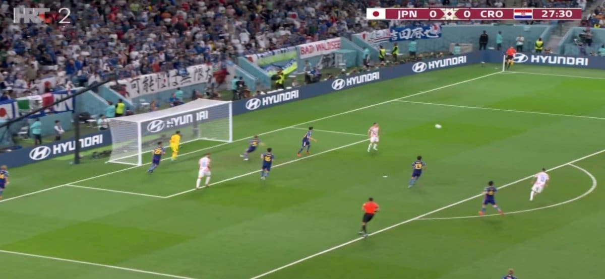 26' Petković pred vratima Japana, velika prilika nakon dubinske lopte Gvardiola, Petković nije vidi Kramarića u idealnoj poziciji, pokušao je dodati na drugu stativu, ništa od svega.