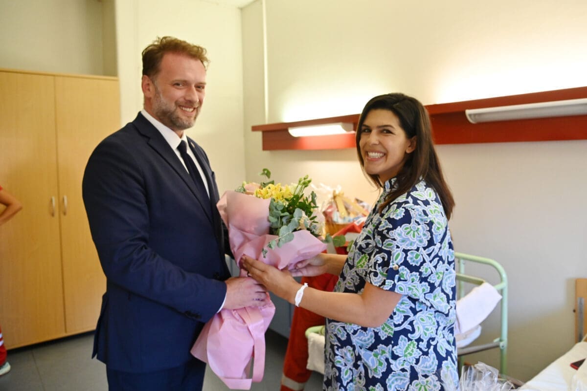 Uz ministra obrane, majku i bebu posjetili su general bojnik Boris Zdilar savjetnik načelnika Glavnog stožera OS RH za zdravstvo, satnica Danijela Vrhovski, dr. med., liječnica medicinskog tima Hrvatske vojske i medicinska sestra časnička namjesnica Maja Herceg.