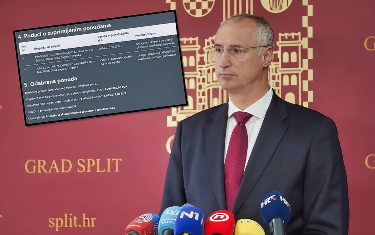 Na javni natječaj Grada Splita za "Uslugu održavanja i dogradnje platforme uredskog poslovanja" pristigle su dvije ponude, a procijenjena vrijednost nabave je 1,3 milijuna eura bez PDV-a.