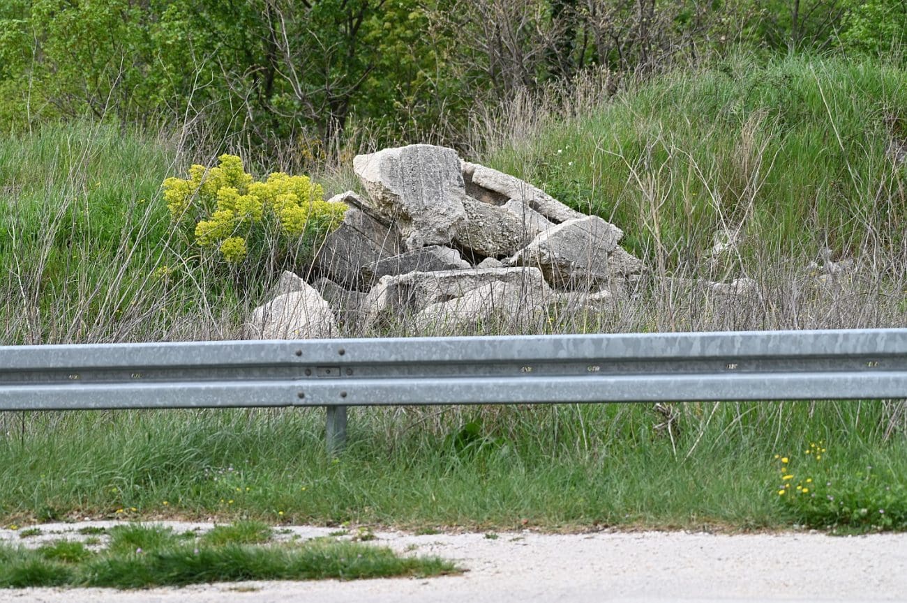 Pokazuje i tragove prethodnih ‘odlaganja otpada’, kako se danas zove bahato bacanje šute, betona i svakojakog građevinskog materijala, uz cestu. Dobar dio toga je već prekrila trava jer su nadležne službe postavile ograde uz cestu pa je pristup onemogućen. Ne zna tko je to bacao u prirodu, nakupilo se godinama, jedna hrpa tu, dvije hrpice tamo, i eto deponija. A sve to odmah preko puta, doslovno, crkvice Svetog Klementa, romaničko-gotičkog sakralnog objekta, crkve u kojoj se pisao i prepisivao ‘Poljički statut’, crkve kojoj najstariji dio datira iz 12 stoljeća…