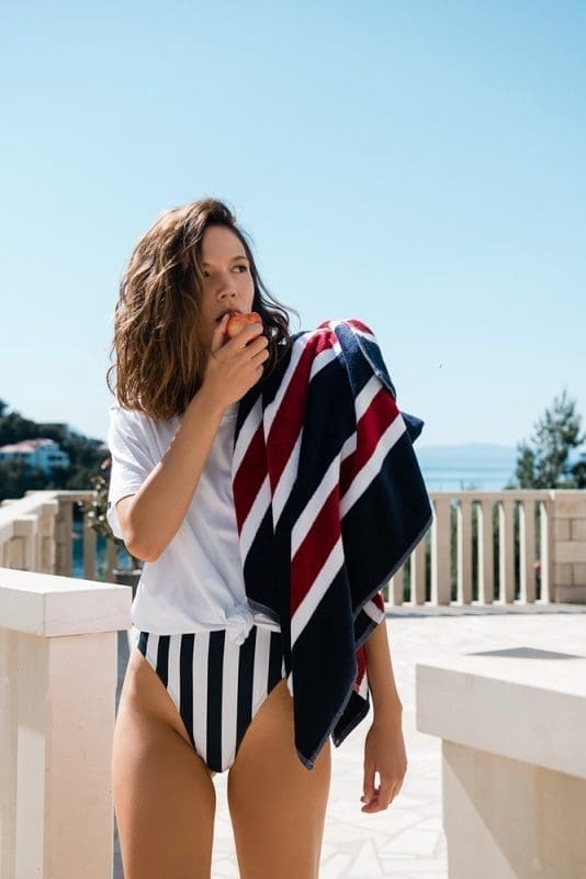 Prugice i mornarsko plava boja zaštitni su znak Aqua-e, a protežu se i kroz novitete predstavljene u novoj kampanji. Važno je napomenuti kako su ženski kupaći kostimi izrađeni od recikliranih materijala, čime Aqua nastoji doprinijeti očuvanju okoliša te služi kao primjer koji treba slijediti. Istovremeno moderni, ali i svevremenski – tako se najbolje mogu opisati modeli ženskih kupaćih kostima. Jednodijelni kupaći kostimi dolaze u dvije kombinacije boja, s modrim i svijetlo plavim prugama, a jednostavan kroj s visoko izrezanim bočnim dijelovima naglašava žensku figuru i donosi dašak retro štiha i modne nostalgije. Osim jednodijelnog kostima, predstavljen je i klasični, dvodijelni koji se može nositi na dva načina. Uz kupaće kostime, savršeno se slažu čuveni Aqua ručnici praktičnih, manjih dimenzija, što će uvelike torbu za plažu učiniti lakšom. U kampanji je prikazano kako od basic komada, poput jednostavnih kupaćih kostima, učiniti perfektnu modnu priču: uz dodatak prozračne muške košulje, šešira, torbi za plažu ili sunčanih naočala.