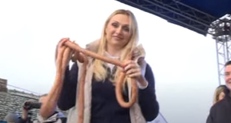 Ministarka poljoprivrede Srbije otvorila kobasicijadu u Turiji, tako što je obmotala kobasicu oko vrata!!!???