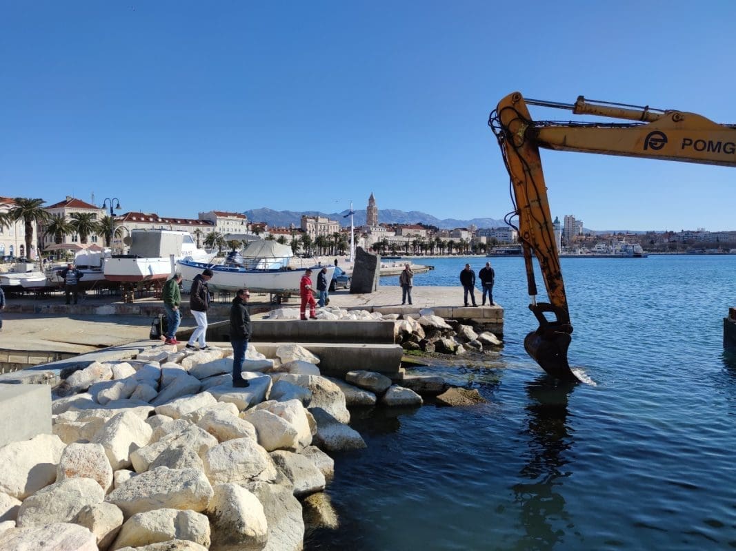 Baš na onom dijelu lučice na Matejuški koji služi za izvlačenje brodica na suho, a dio zida se urušio tijekom ranijih nevremena pa je kočio svakodnevnu aktivnost u najpoznatijoj splitskoj lučici.