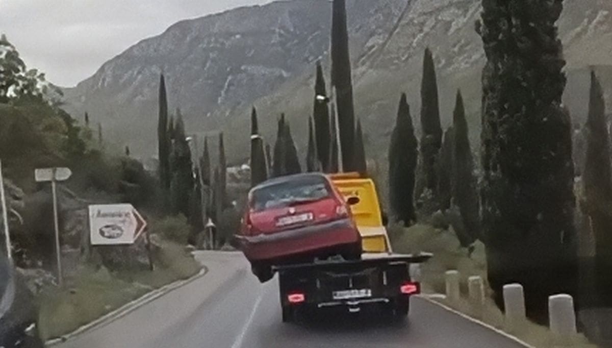 Nađete li se ikad u potrebi za vučnom službom i(li) ne daj Bože, doživite prometnu nesreću, vaš bi automobil mogao pretrpjeti dodatne "bolove". Kao i crveni Clio na vučnoj službi snimljen u Dalmaciji.