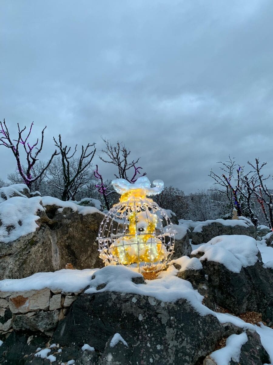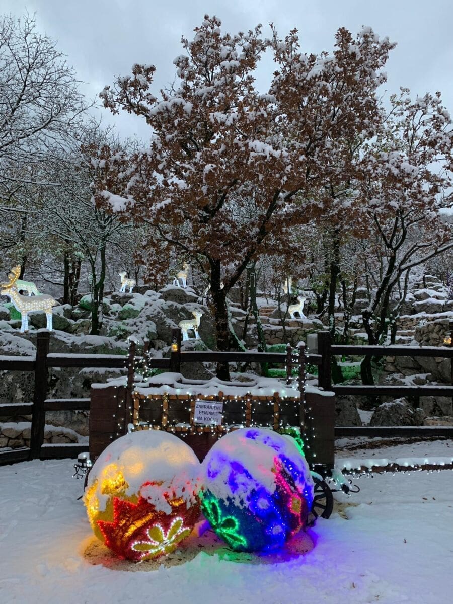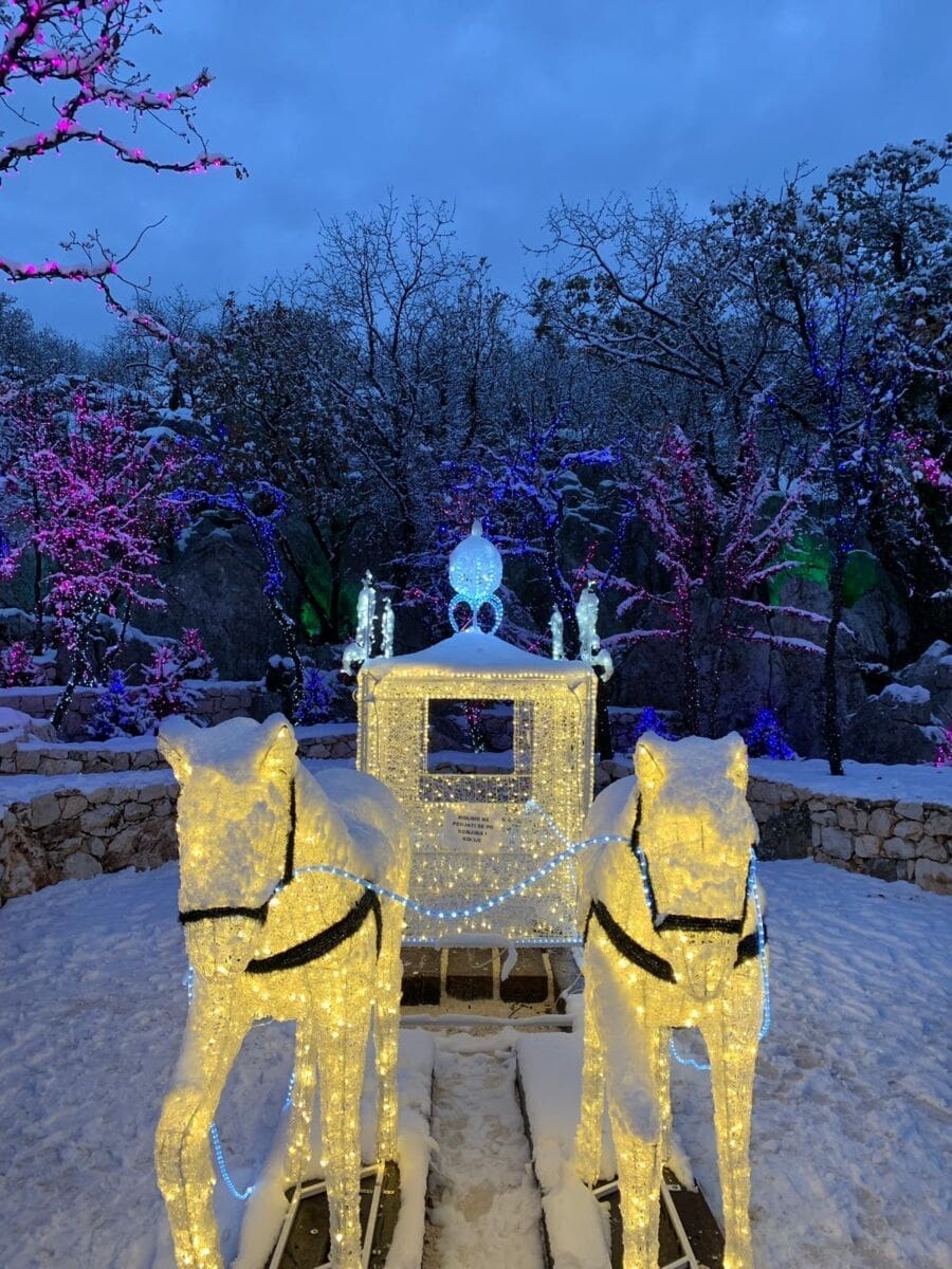 Tisuće upaljenih lampica i osvijetljenih figura sa snježnim pokrivačem stvorili su pravu zimsku čaroliju. Snijeg je tijekom subote primamio dodatan broj posjetitelja koji su uživali u zimskoj čaroliji usred krša.