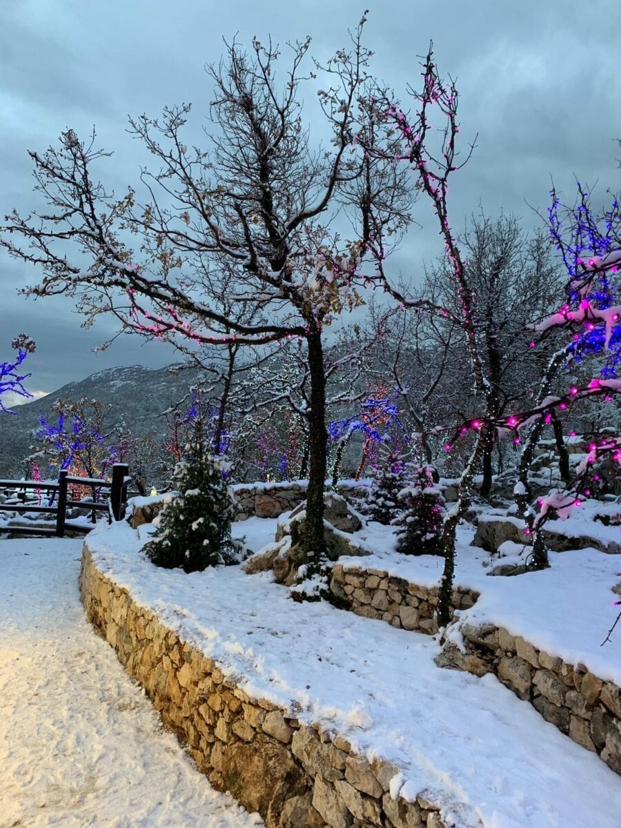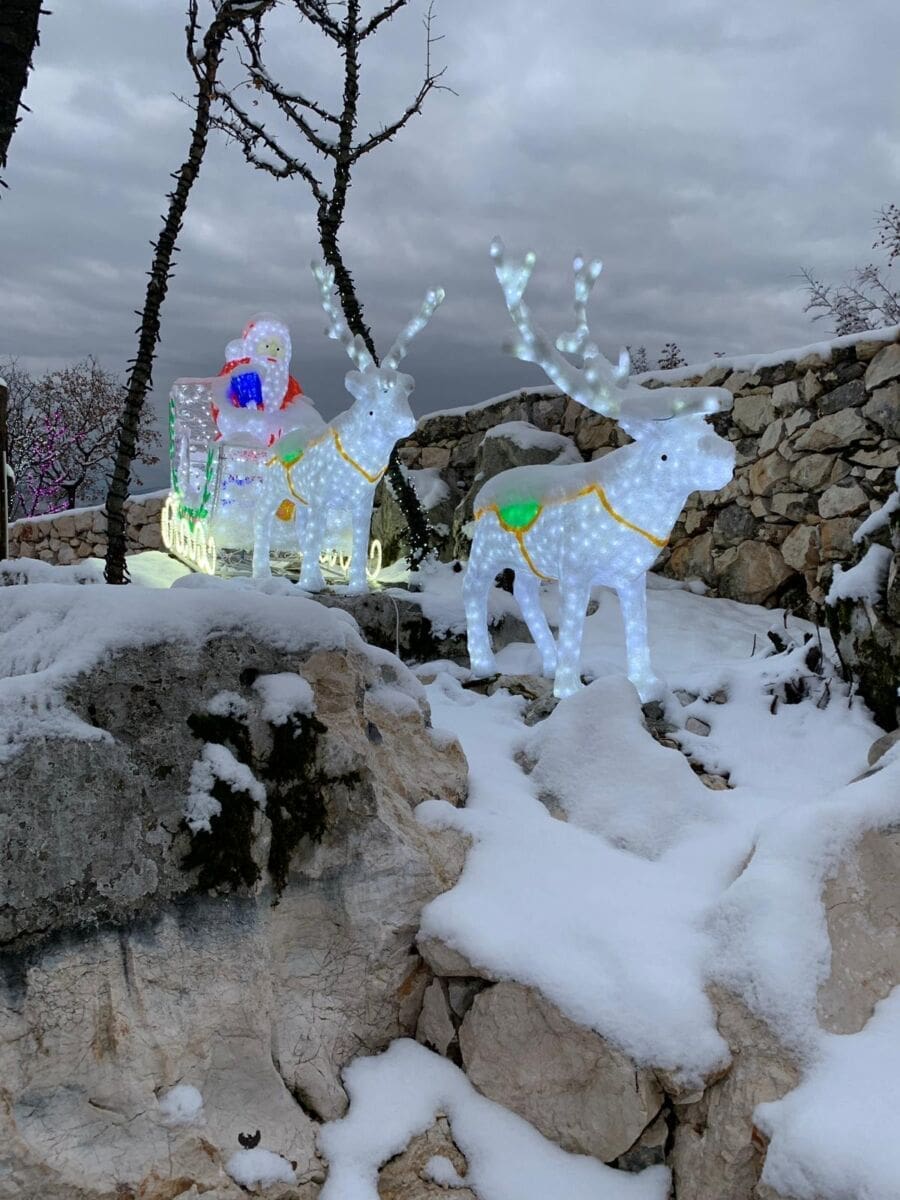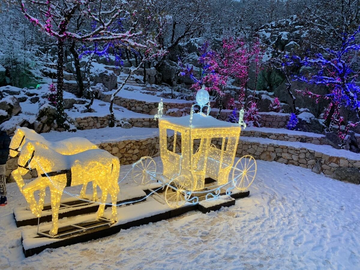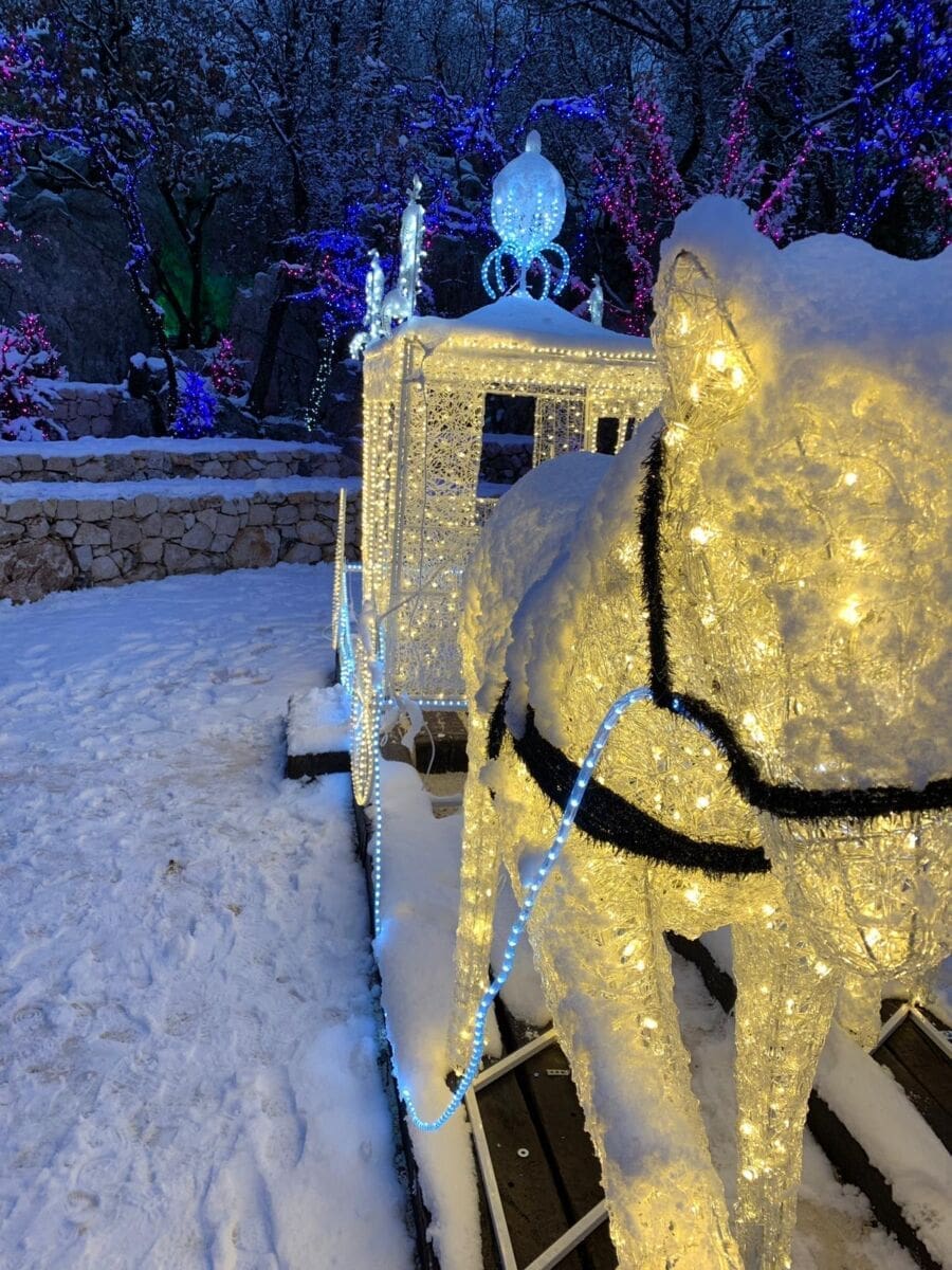 Tisuće upaljenih lampica i osvijetljenih figura sa snježnim pokrivačem stvorili su pravu zimsku čaroliju. Snijeg je tijekom subote primamio dodatan broj posjetitelja koji su uživali u zimskoj čaroliji usred krša.