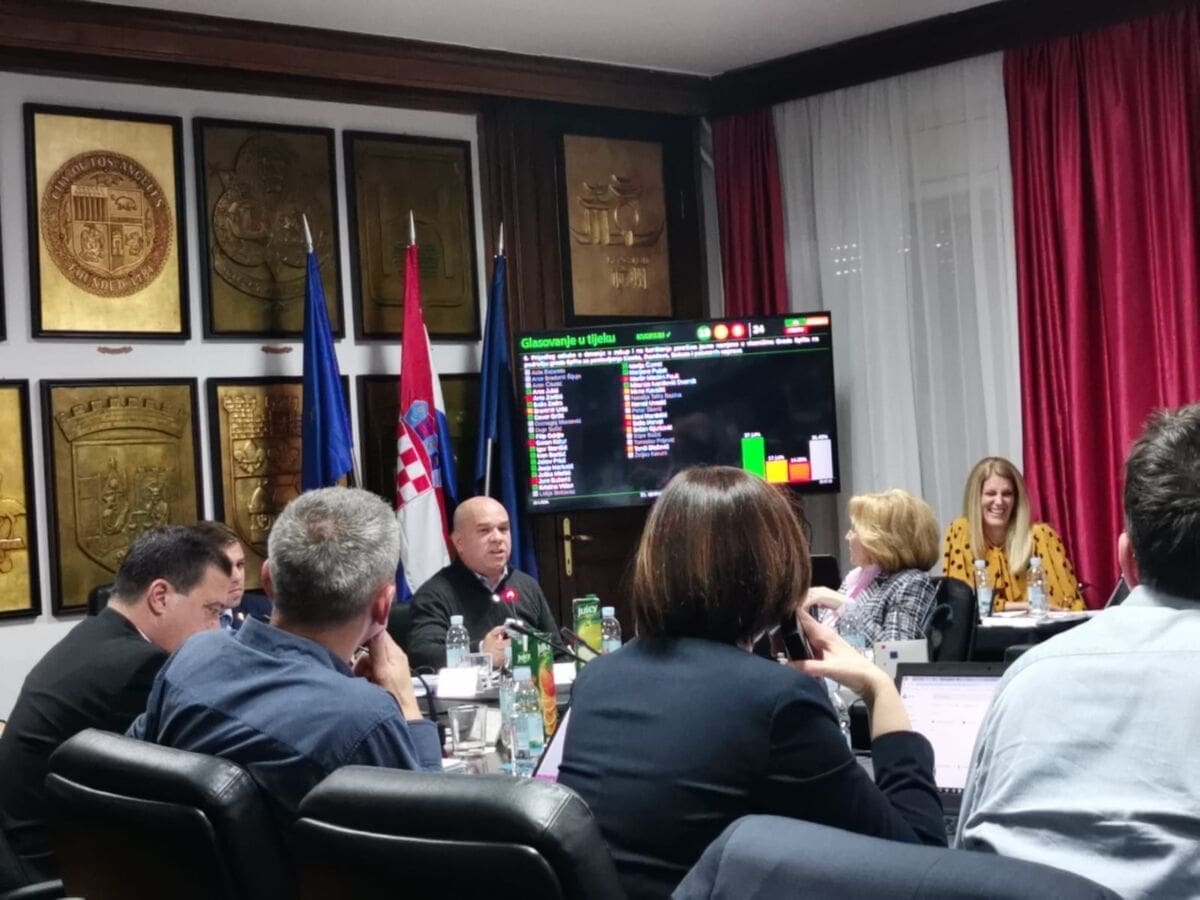 Vijećnici su sustav prvo malo testirali, a onda krenuli glasovati elektroničkim putem. Nakon što su vijećnici glasovali, na ekranu se pojavilo i ime Marina Pauka koji je bio evidentiran da je glasovao, iako nije bio prisutan u vijećnici. Zbog nečije šale glasovanje se poništilo te se pristupilo glasovanju na konvencionalan način.