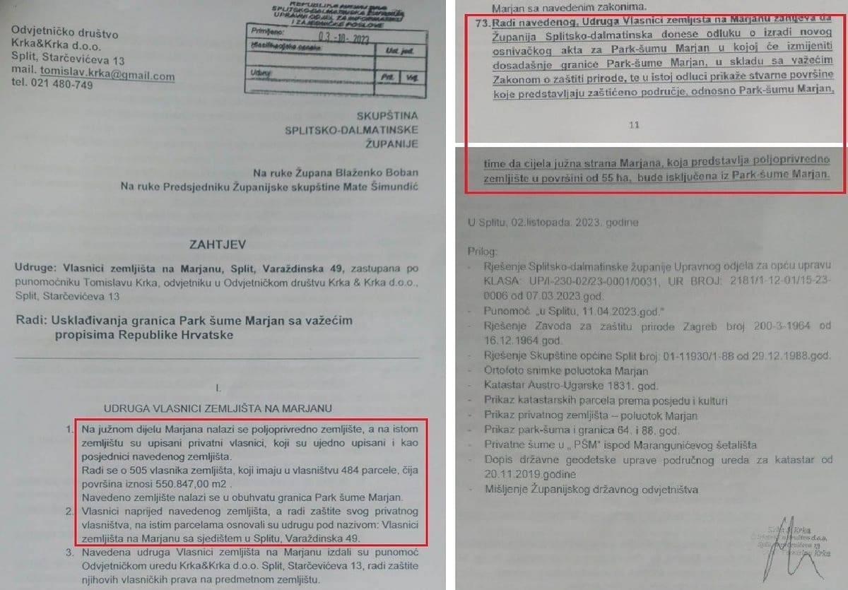 "Tvrdnja da udruga vlasnika 'želi zakoniti osnivački akt usklađen s važećim Zakonom o zaštiti prirode iz 2013.' nije pravno utemeljena. Činjenica je da su osnivački akti Park-šume Marjan iz 1964. i 1988. godine u potpunosti zakoniti i važeći. To što ih vlasnici zemljišta pokušavaju osporiti, ne znači da su nezakoniti.