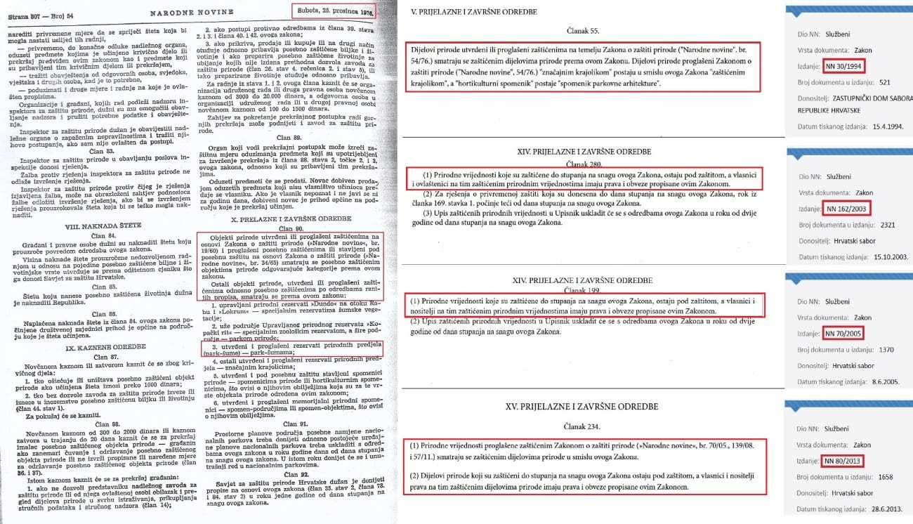 Kad se već spominje usklađenost sa Zakonom o zaštiti prirode iz 2013., potrebno je pročitati članak 234. stavak 1. u Prijelaznim i završnim odredbama tog Zakona. On jasno propisuje: