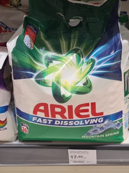 Cijena Finish tableta za pranje posuđa od 110 komada je 31,90 eura. Ariel prašak ćete u Bipi platiti 17,40 eura, a Zewa toaletni papir na akciji možete pronaći za čak 2,80 eura.