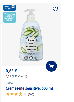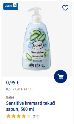 Razlika u cijeni Palmolive kupke za tuširanje ipak nije toliko drastična, ali ipak u Njemačkoj ovi proizvodi koštaju 1,25 eura, a u Hrvatskoj 1,98 eura. Balea Sensitive tekući sapun u Hrvatskoj ćete platiti 0,95 eura, dok mu je u Njemačkoj cijena 0,65 eura.